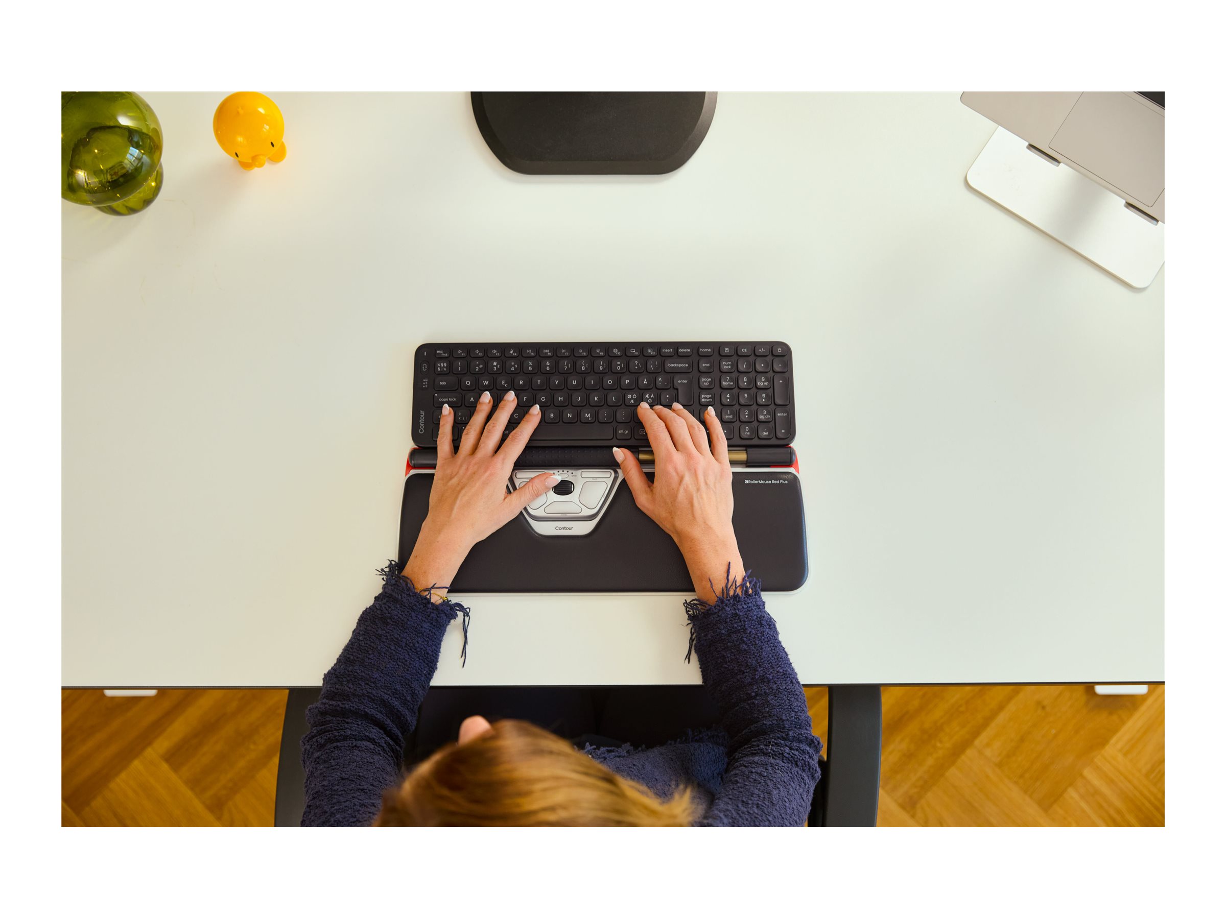 RollerMouse Red og Balance Mid-Size er designet til at fungere perfekt sammen og danner et fuldt funktionelt ergonomisk setup. Sammen eliminerer de behovet for at række ud og gribe, så dine hænder, håndled og skuldre forbliver afslappede og centrerede. Resultatet? Færre smerter, mere præcision og komfort, der varer ved. Bemærk venligst, at denne combo erstatter den tidligere RollerMouse Red Plus + Keyboard PN, Wireless (SKU: CDRMREDPN10213).