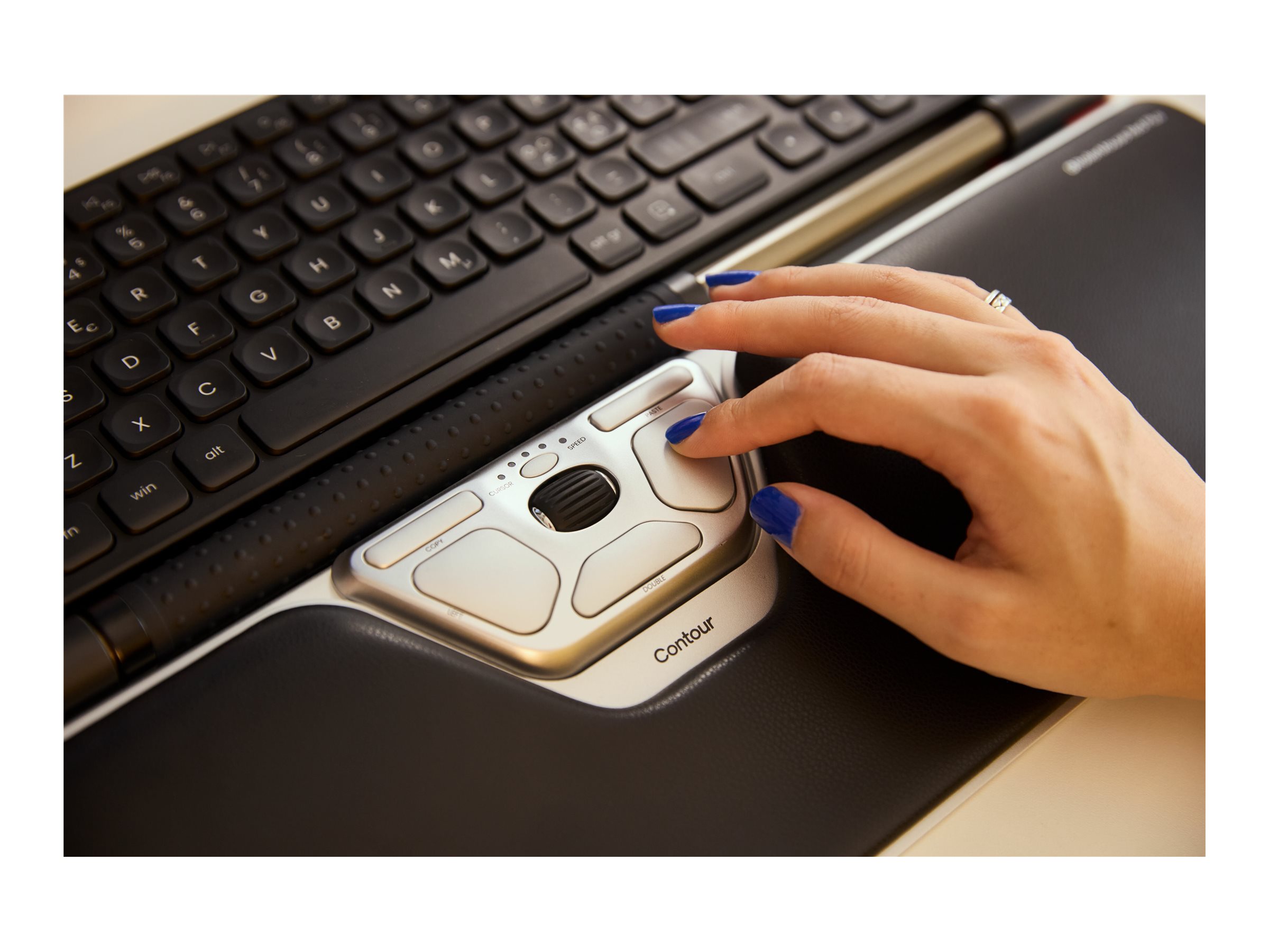 Samme prisvindende aluminiums hus, samme banebrydende teknologi, avancerede rullestang og syv centrerede knapper, der er med til at øge produktiviteten, som du kender det fra RollerMouse Red.