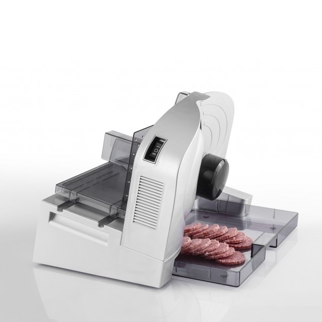 Til alle dem, der bager deres eget brød eller kan lide at skære deres ost, skinke eller salami selv, har FRITEL den fantastiske pålægsmaskine SL 3655. Denne metalskærer har en skråtstillet vogn for det mest optimale skæreresultat. Og til fans af carpaccio er der en glat kniv, der fås separat.