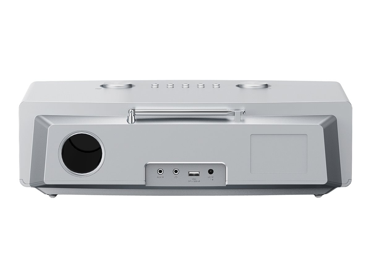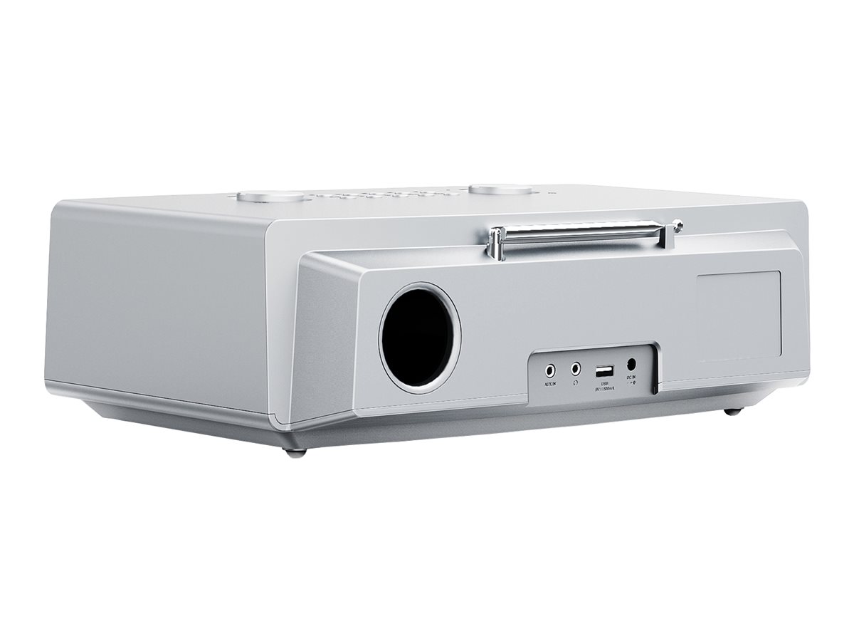 Indbygget ur med alarm, sleep timer og snooze-funktion gør systemet praktisk og ideelt til daglig brug.