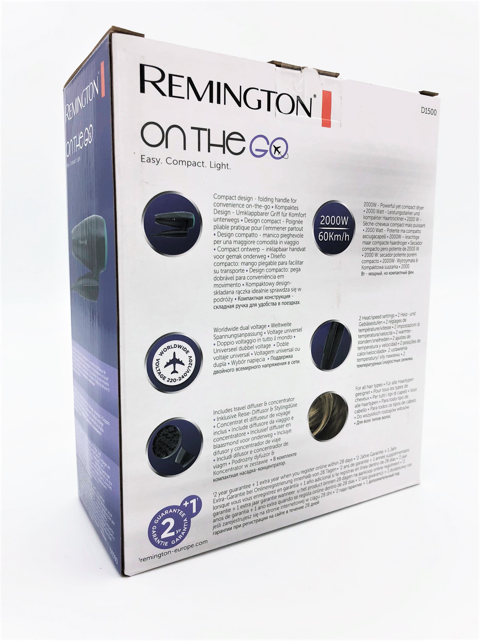 Tag din yndlings styler med dig uanset hvor du skal hen, takket være Remingtons rejsetilbehør. Koncentratoren er ideel for præcisions-styling og for at skabe et glat look, mens diffuseren giver volume og krøller. Hårtørreren har global spænding - ideel til rejsen.