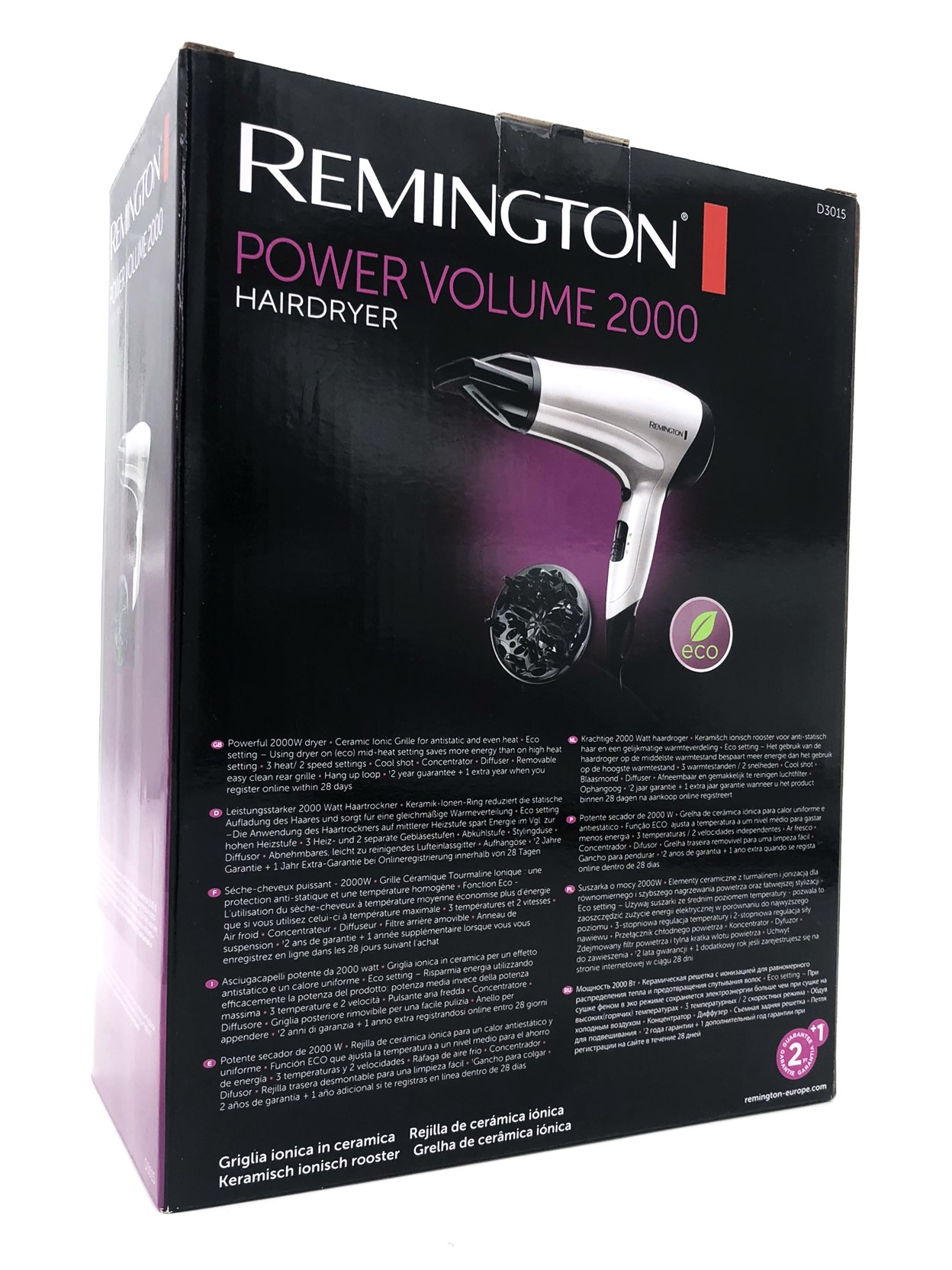 | Produktbeskrivelse | Remington D3015 Power Volume 2000 - hårtørrer |