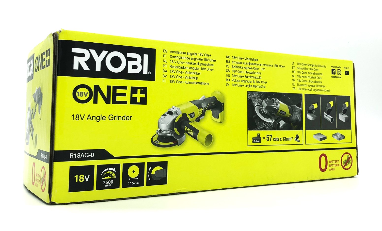 Ryobi One+ R18AG-0 - Vinkelkværn - ledningfri - 115 mm - intet batteri - 18 V
