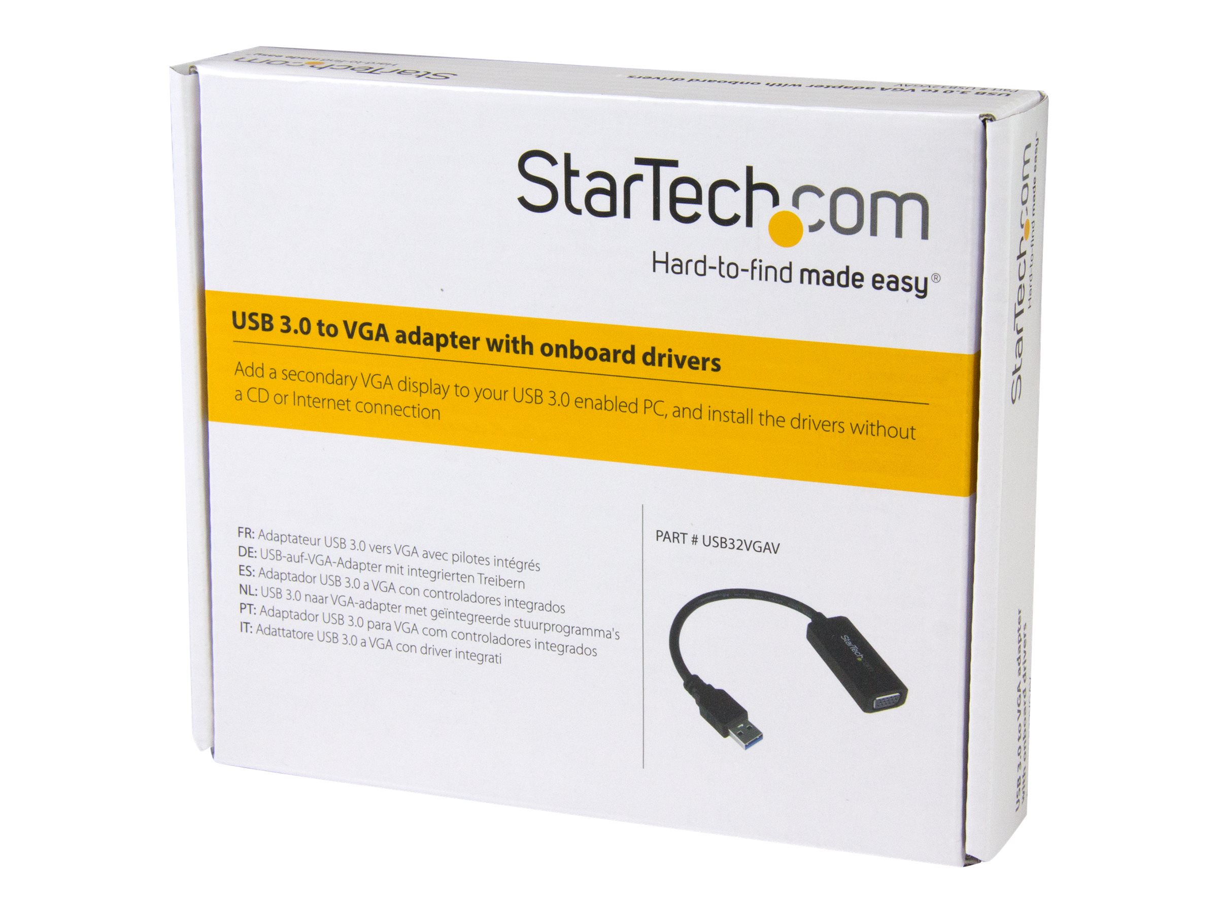 | Produktbeskrivelse | StarTech USB 3.0 to VGA Display Adapter 1920x1200, On-Board Driver Installation, Video Converter with External Graphics Card - Windows (USB32VGAV) - USB / VGA adapter - USB Type A til HD-15 (VGA) - 19.5 m |