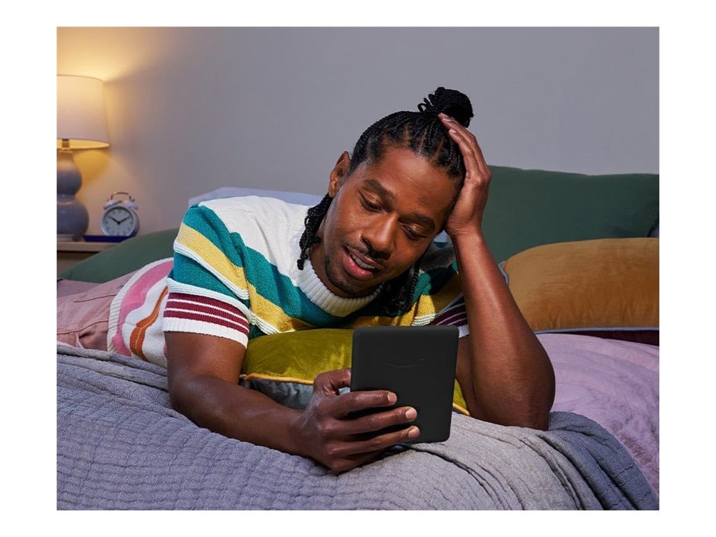 Paperwhite leder lyset mod skærmen ovenfra i stedet for at projicere det ud mod dine øjne som bagbelyste skærme, hvilket reducerer skærmtræthed. Du kan justere skærmens lysstyrke for at skabe en perfekt læseoplevelse under alle lysforhold, fra stærkt sollys til læsning ved sengetid.