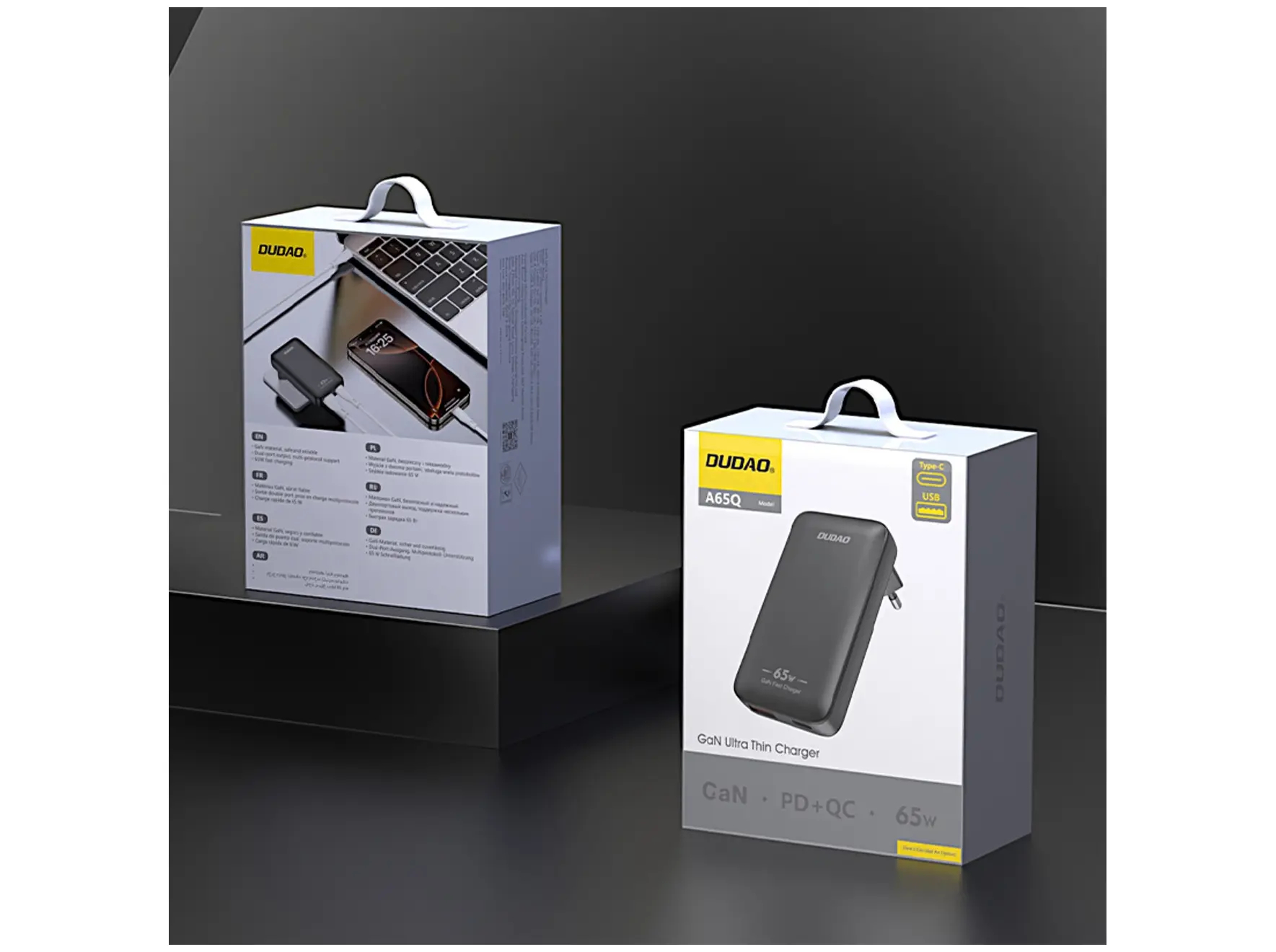 Dudao - Strømforsyningsadapter - 65 Watt - GaN - 2 output-stikforbindelser (USB-A x1, USB-C x1) - Black - Europa