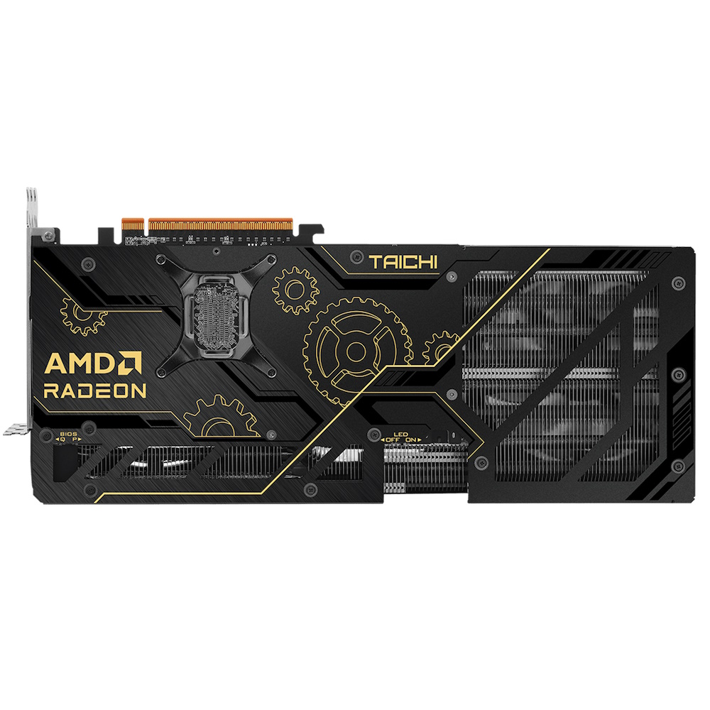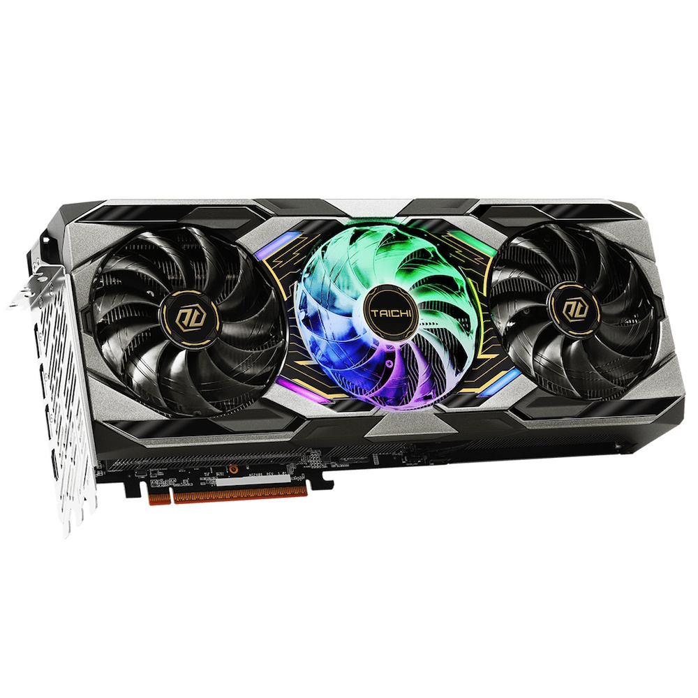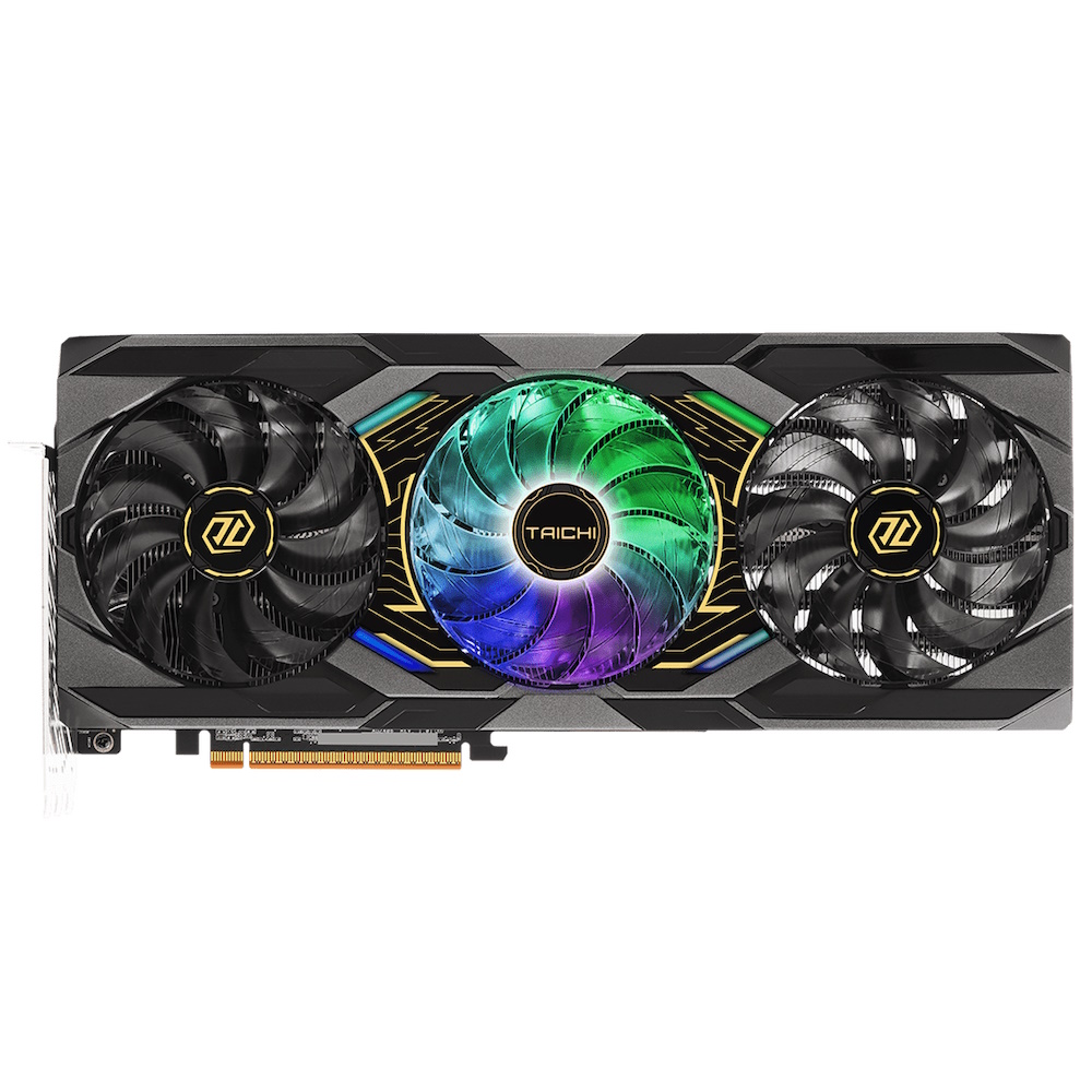 | Egenskaber | Polychrome SYNC, LED til/fra-kontakt, ARGB pin-samlestykke, Triple Fan Design, metalbagplade, Reinforced Metal Frame, Taichi Triple Fans, Dual Bios, modsat luftstrøm, Striped Ring Fan, 0dB Technology, luftafbøjningsfinne, ultra-fit varmerør, nikkelbelagt kobberbase, nano termisk pasta, japanese SP-Cap, DrMOS, Premium 100A Power Choke, 2 oz kobber PCB, matsort PCB, High Density Glass Fabric PCB, AMD FidelityFX Super Resolution 4 (FSR), AMD HYPR-RX teknologier, AMD Radiance Display Engine, AMD Flu |