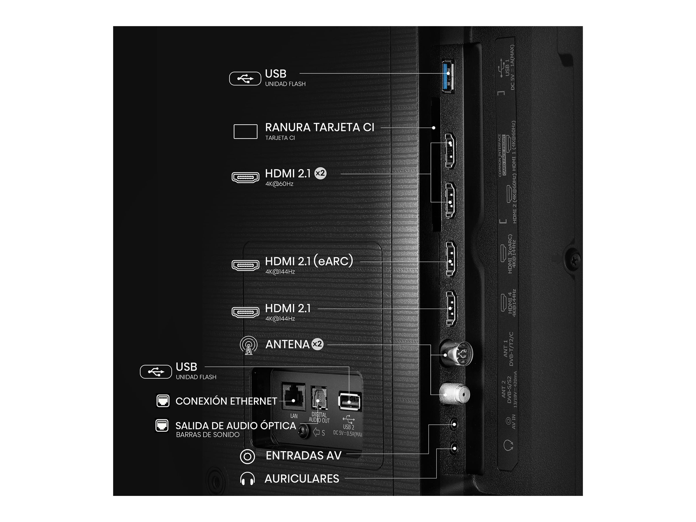 | Internet Streaming Services | Netflix, Amazon Prime Video, Disney+, DAZN, Movistar+, YouTube, Showtime, HbbTV 2.0.4 |