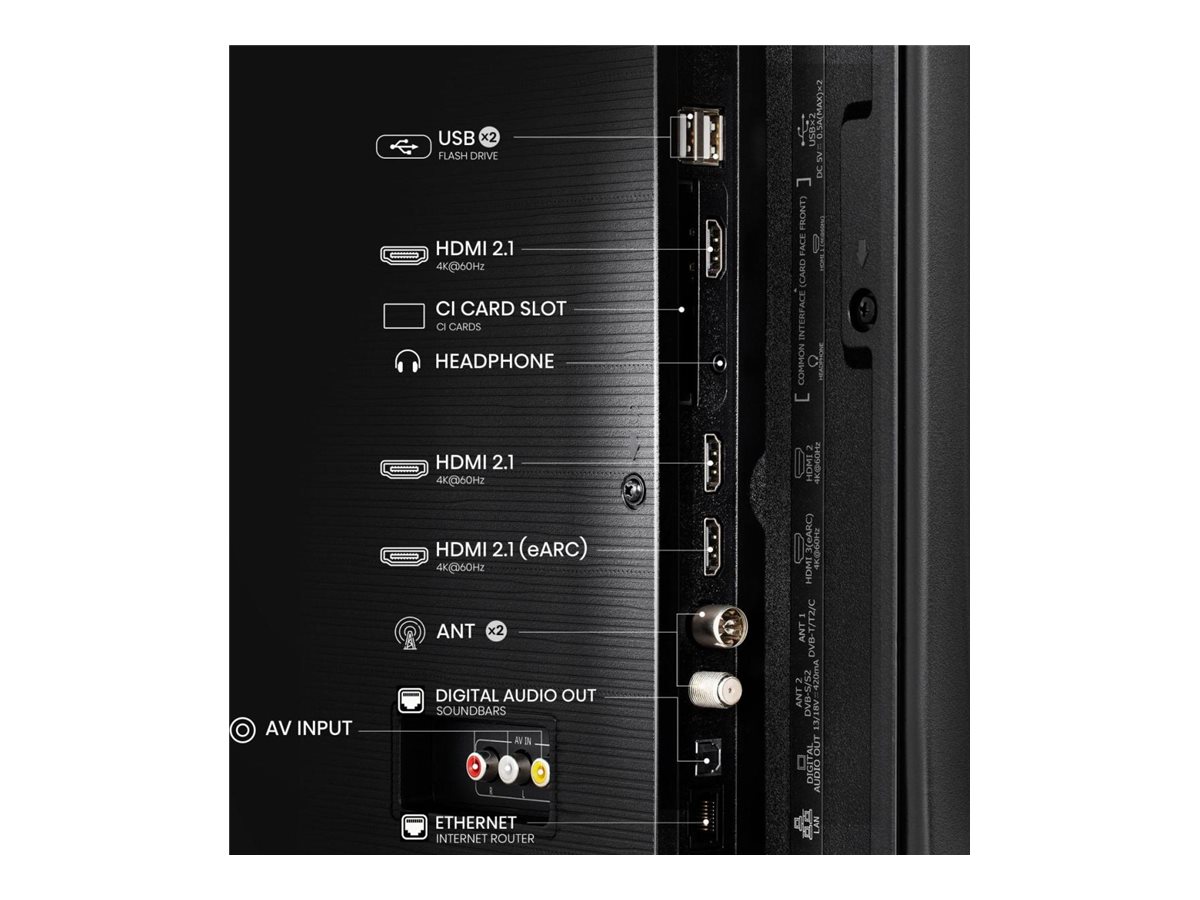 | Billedforbedringer | Wide Color Gamut, 4K AI Upscaling, MEMC, 3D digital filter, MPEG Noise Reduction, Mosquito Noise Reduction, Quantum Dot Color, AI Smooth Motion |