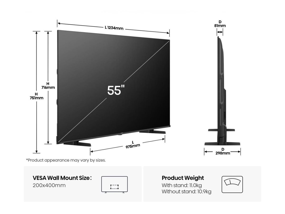 | Diagonal klasse | 55" |