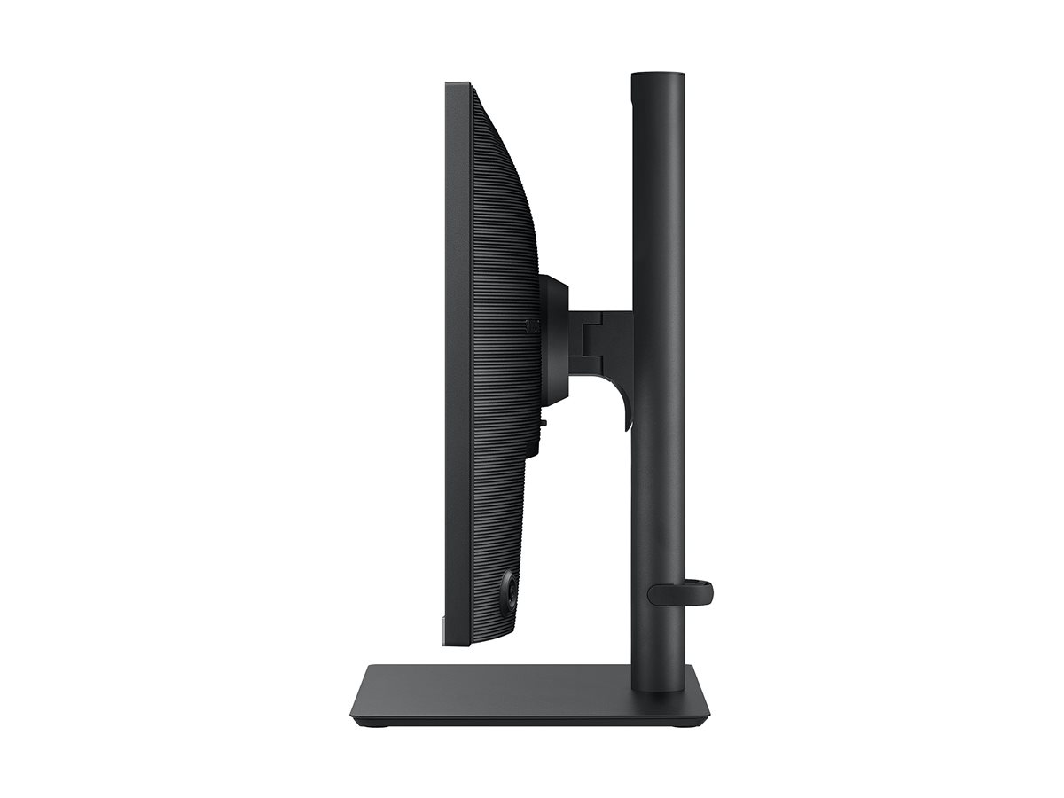 Skærmens højdejustering på 130 mm samt dreje-, sving- og vippefunktioner giver fleksibilitet til at indstille skærmen til en behagelig betragtningsposition.