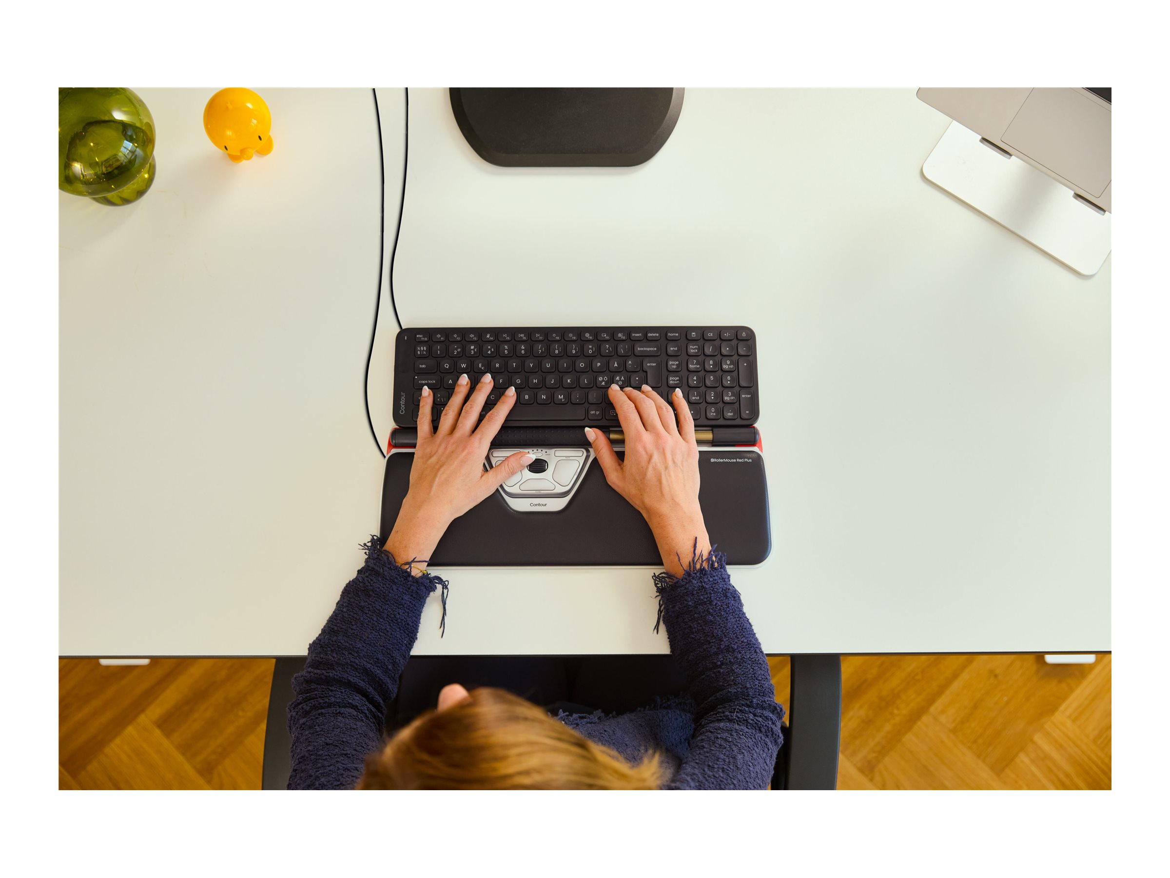 RollerMouse Red og Balance Mid-Size er designet til at fungere perfekt sammen og danner et fuldt funktionelt ergonomisk setup. Sammen eliminerer de behovet for at række ud og gribe, så dine hænder, håndled og skuldre forbliver afslappede og centrerede. Resultatet? Færre smerter, mere præcision og komfort, der varer ved. Bemærk venligst, at denne combo erstatter den tidligere RollerMouse Red Plus + Keyboard PN, Wired (SKU: CDRMREDPN20213).