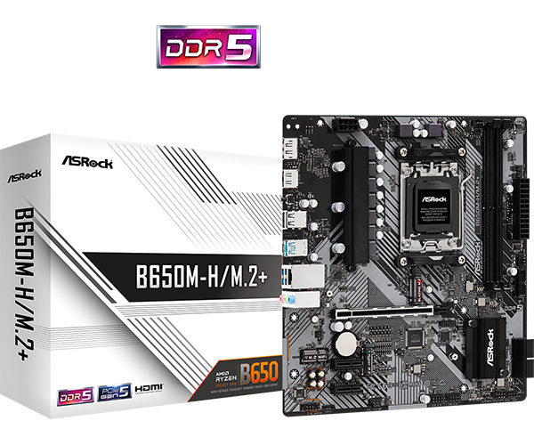 | Produktbeskrivelse | ASRock B650M-H/M.2+ - bundkort - micro ATX - Socket AM5 - AMD B650 |
