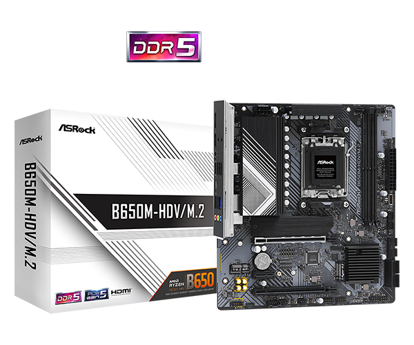 | Produktbeskrivelse | ASRock B650M-HDV/M.2 - bundkort - micro ATX - Socket AM5 - AMD B650 |