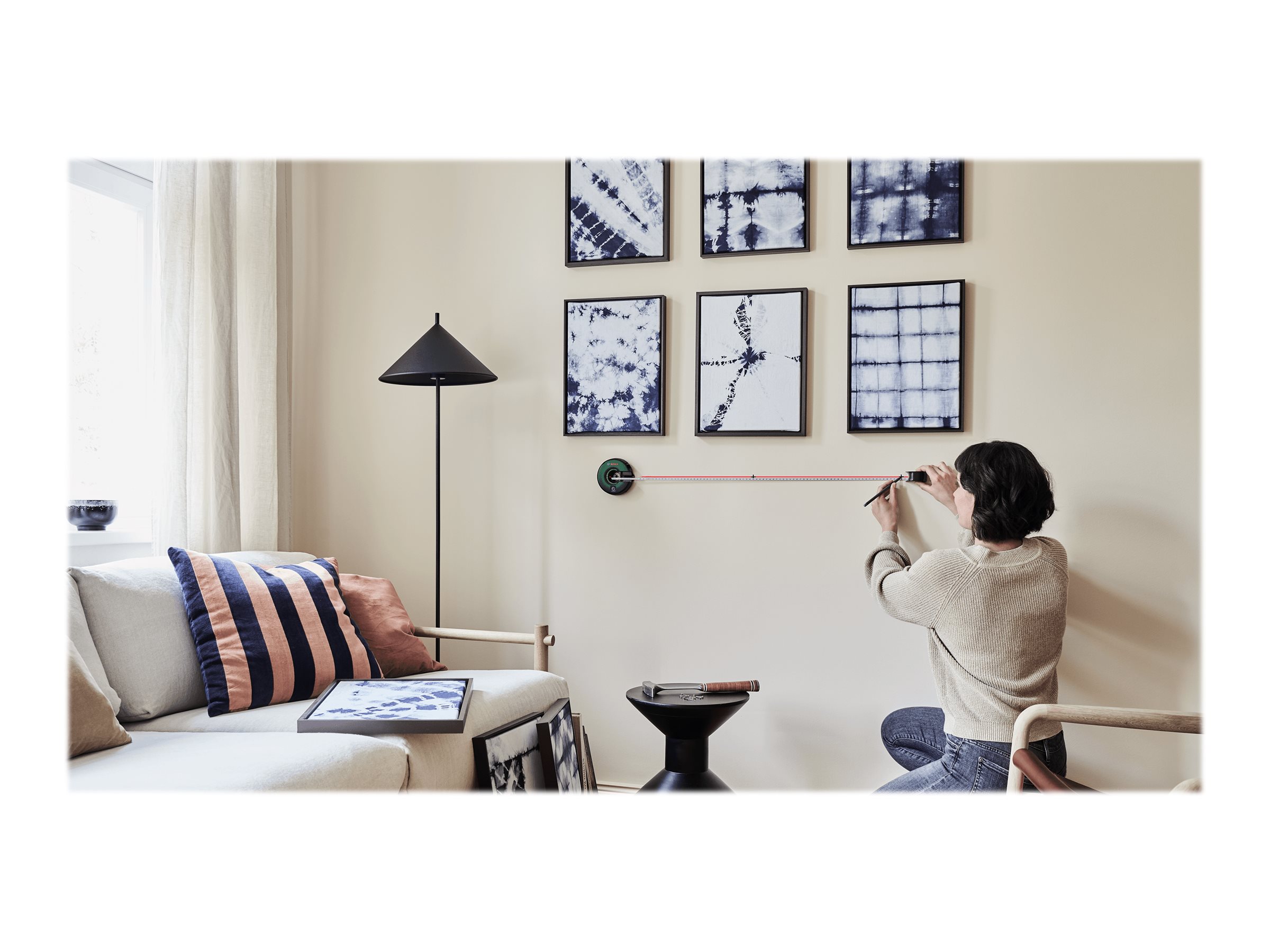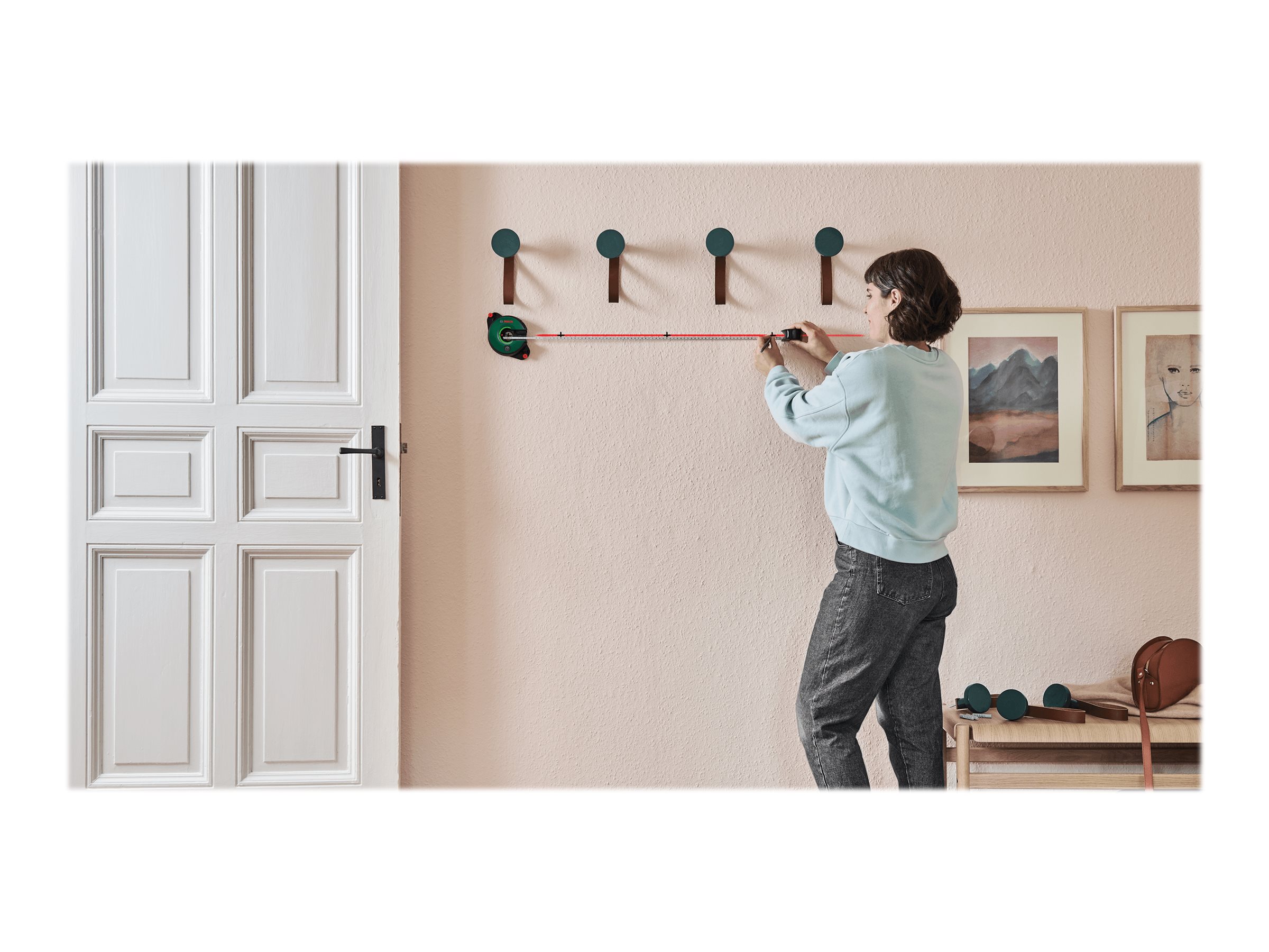 | Synlighedsrækkevidde | 1,7 m (laserlinje), 1,5 m(målebånd) |