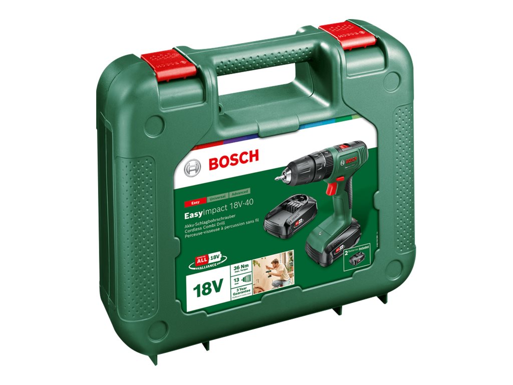 | Produktbeskrivelse | Bosch EasyImpact 18V-40 hammerbor/skruemaskine - ledningfri - 2-hastigheders - intet batteri |