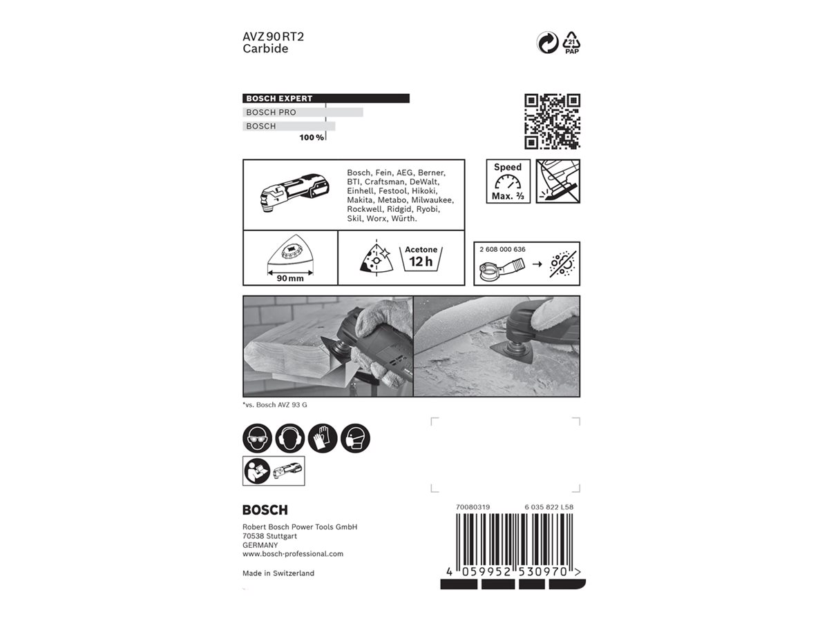 | Produktbeskrivelse | Bosch Expert AVZ 90 RT2 - slibeplade - for hardwood, morter, fiberforstærket plastik, tæppeklæbemiddel |