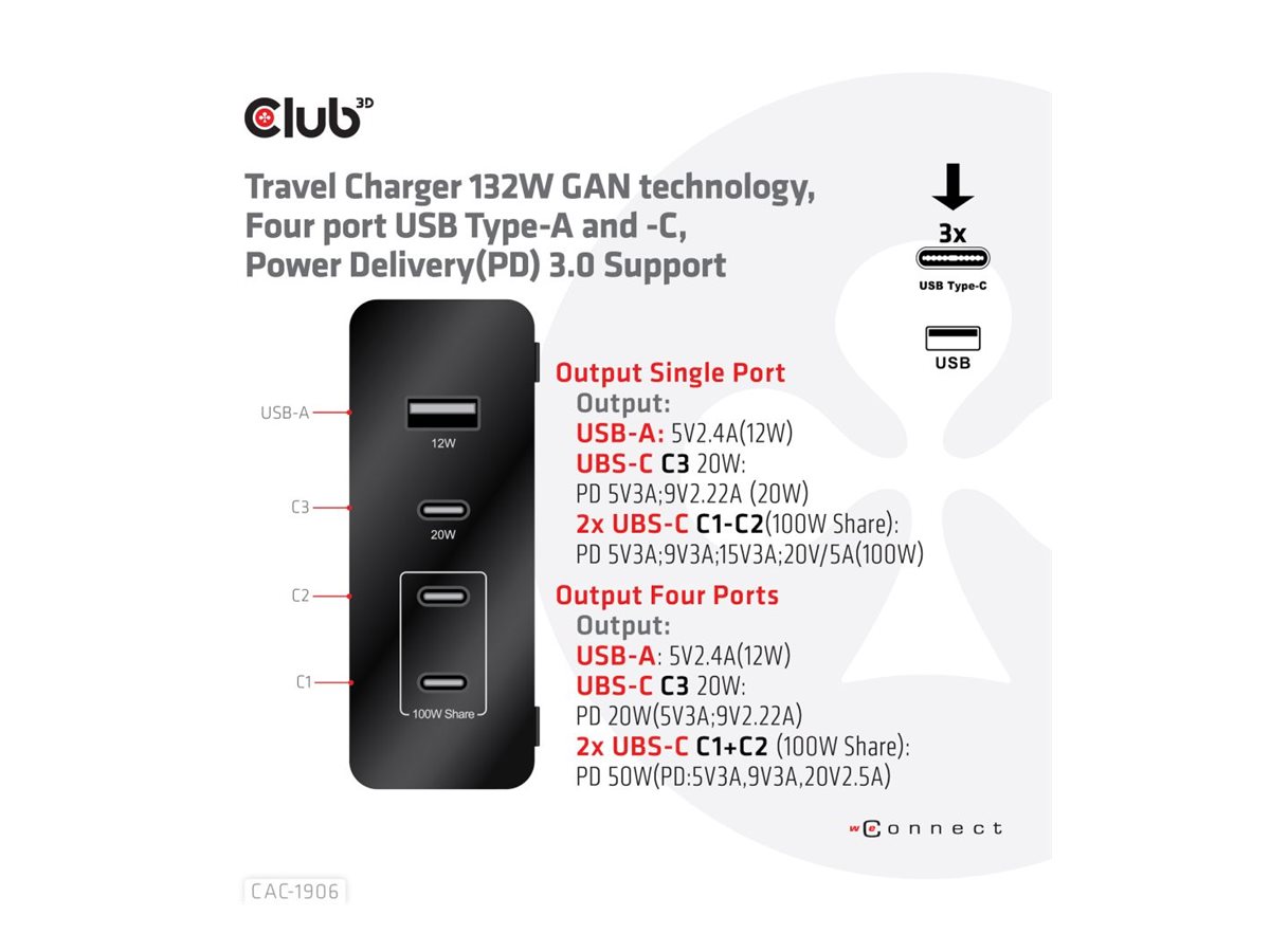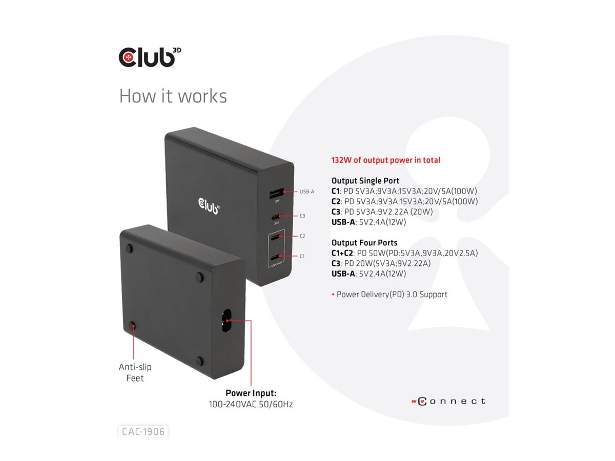 | Produktbeskrivelse | Club 3D CAC-1906 - strømforsyningsadapter - 132 Watt |