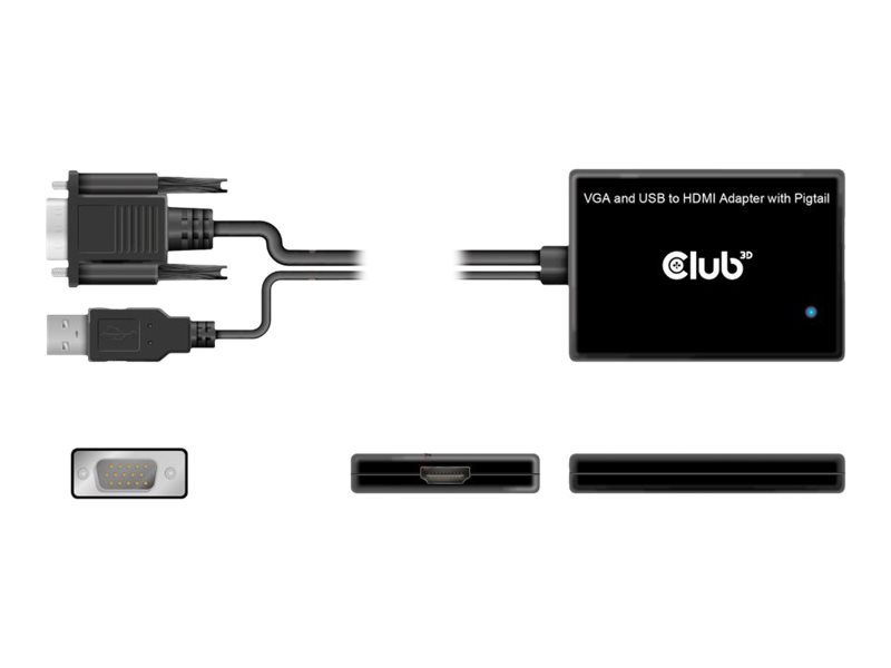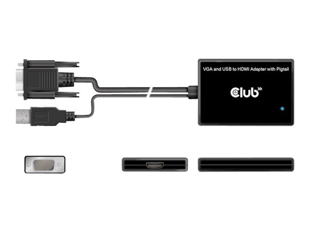Club 3D - Videoadapter - HD-15 (VGA), USB (kun strøm) han til HDMI hun - 60 cm - afskærmet - 1080p support