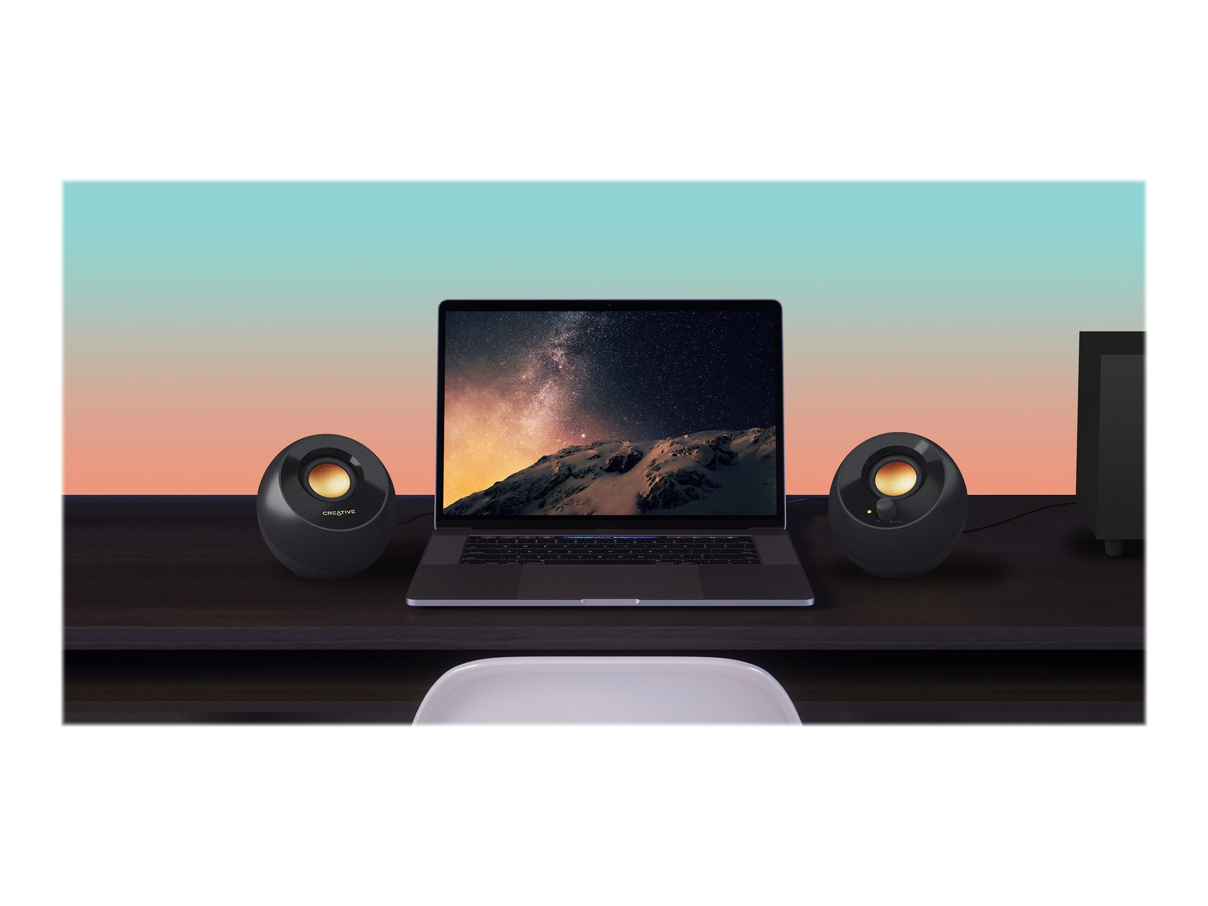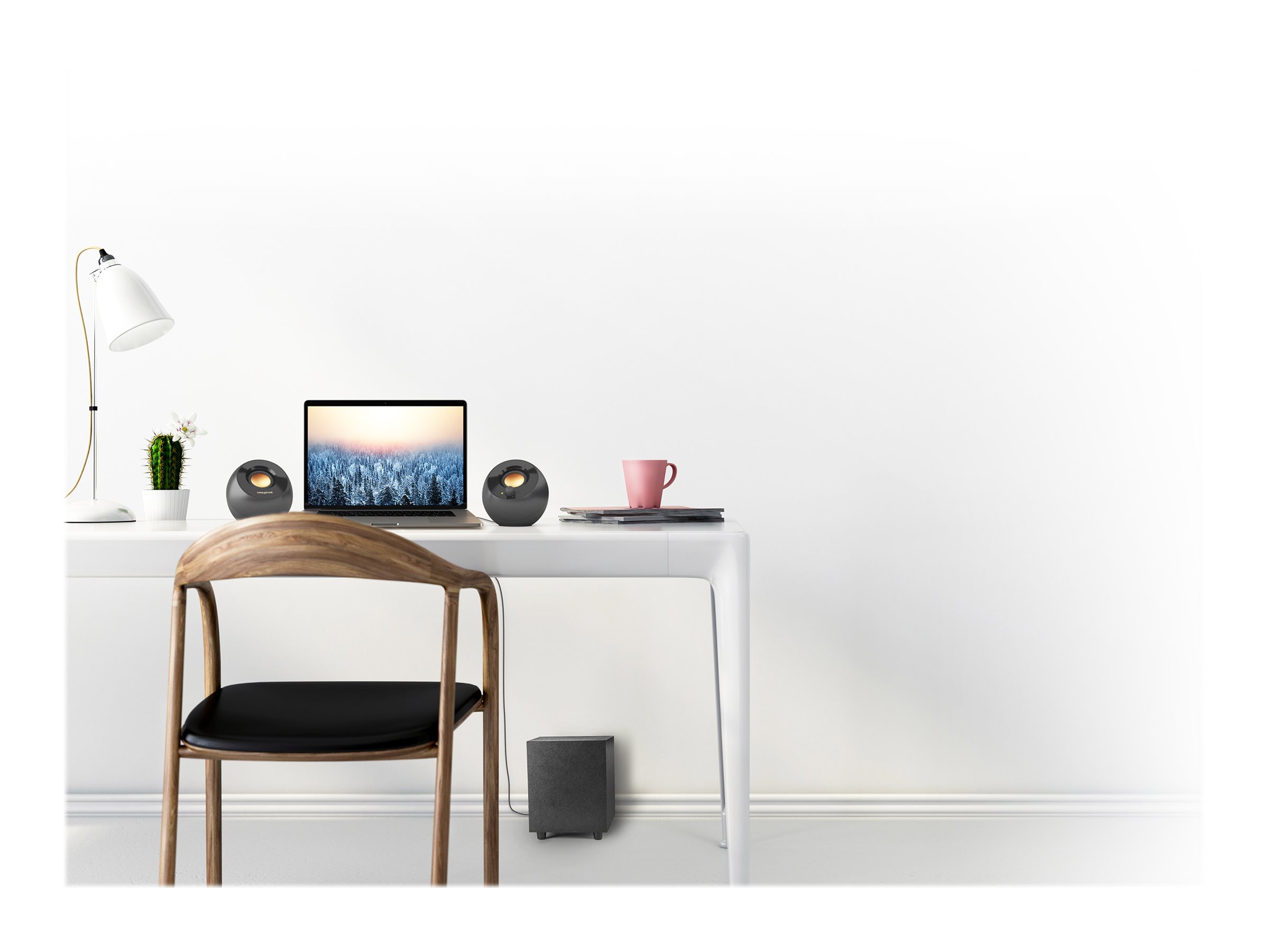 En perfekt kombination af minimalisme og ydeevne, den enkle men dog fuldendt designet Creative Pebble Plus smelter perfekt sammen med dit skrivebordsmiljø.