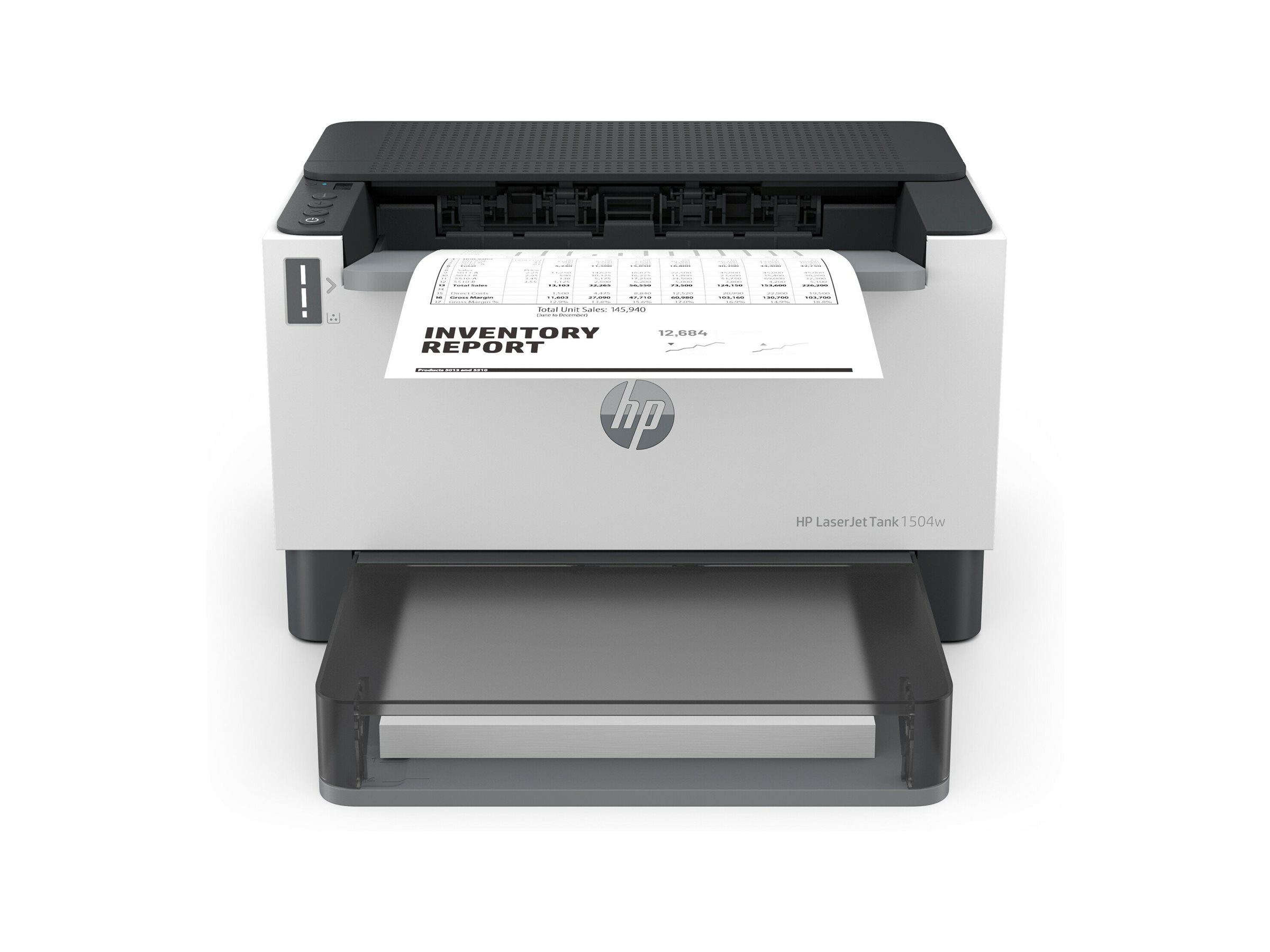 Oplev alle de erhvervsrettede funktioner og besparelse med HP LaserJet Tank 1504w-printer med op til 5.000 sider forudpåfyldt originalt HP-toner.