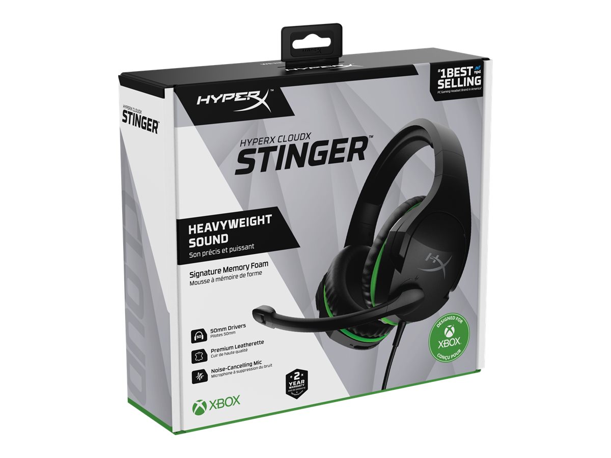 HyperX CloudX Stinger er et officielt Xbox-licenseret headset, perfekt til Xbox One-gamere, der søger komfort, fremragende lydkvalitet og bekvemmelighed. Det er let og er forsynet med den velkendte HyperX-hukommelsesskum, som giver en legendarisk komfort til de lange gaming-sessioner. Ørekopperne, der kan drejes 90°, ligger behageligt rundt om nakken i pauserne. 50 mm-retningsenheder leverer højkvalitetslyd med ultrahøj præcision, som holder dig fokuseret i din gaming. Headsettet har en bekvem lydstyrkeskyder på ørekoppen og mikrofon med støjreduktion og drejeknap til frakobling af lyd.