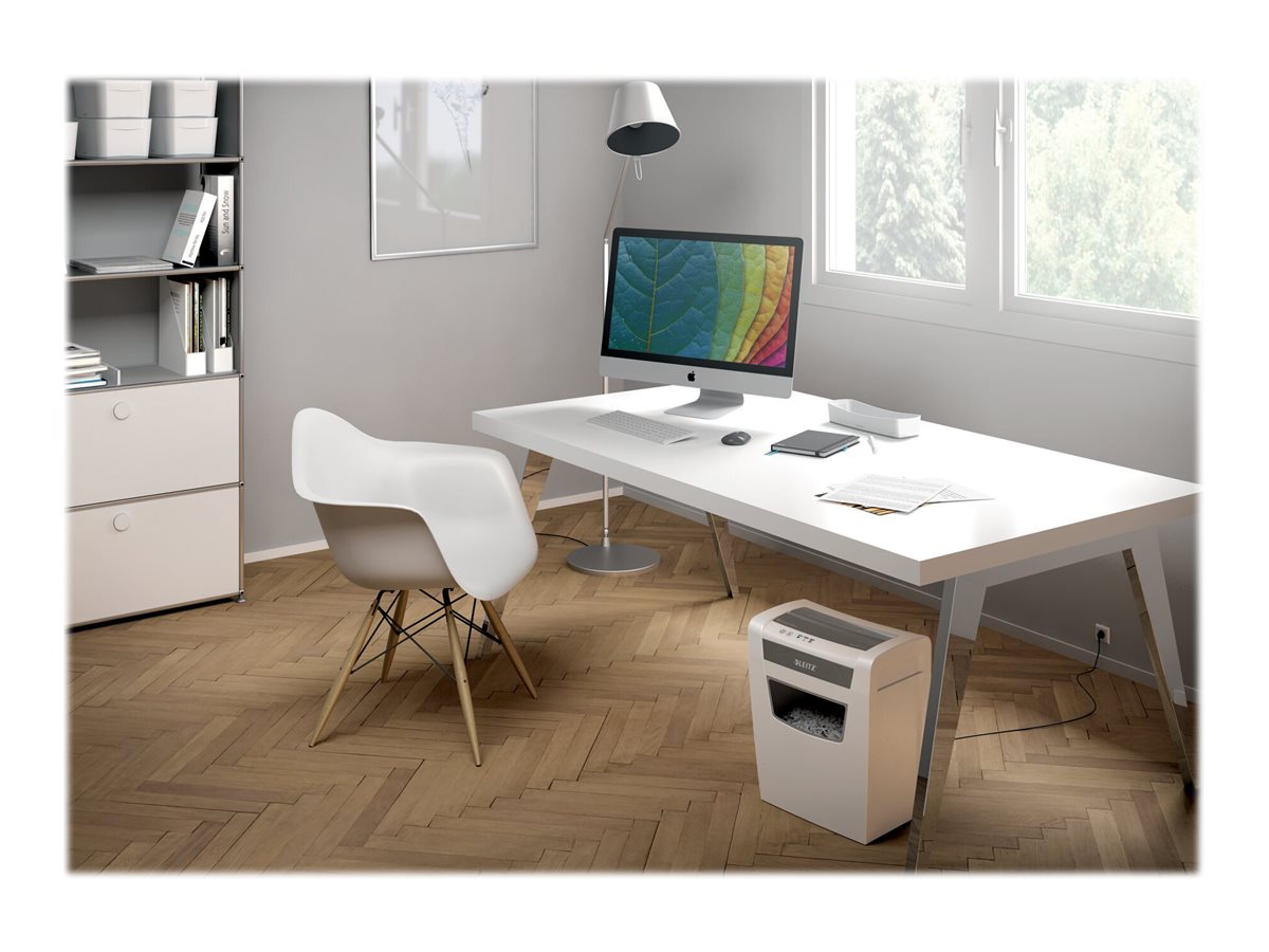 En spændende ny og stilfuld personlig makuleringsmaskine fra Leitz. Kompakt, der passer ind de fleste steder - ideel til hjemmekontoret. Bring stil til dit hjemmekontor med denne blokeringsfri, stille og langtidsløbende makuleringsmaskine. Makulerer 10 ark A4 ned i den store 23 liter beholder. Enkel betjening ved brug af touch kontrolknapperne. Forøg sikkerheden i din dokumentdestruktion med denne DIN P4 makuleringsmaskine.