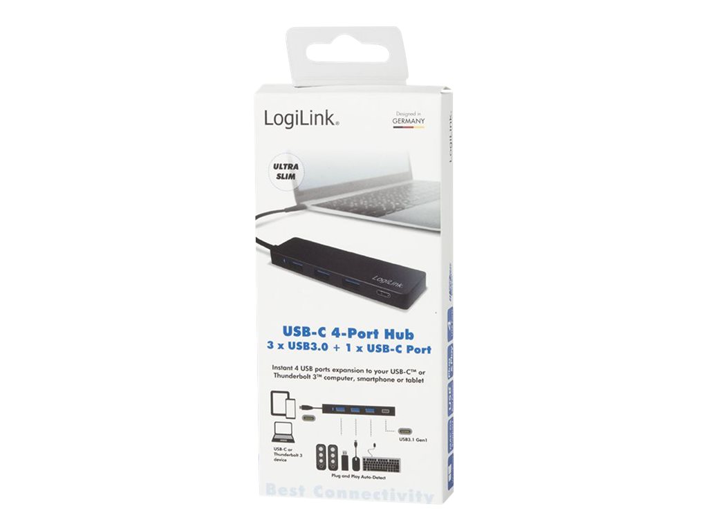 | Produktbeskrivelse | LogiLink Ultra-slim USB-C 3.1 hub - hub - 4 porte |
