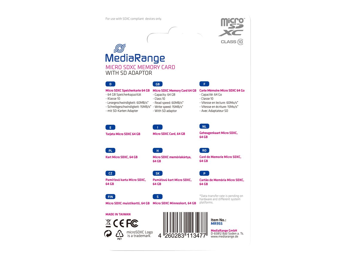 | Produktbeskrivelse | MediaRange - flashhukommelseskort - 64 GB - microSDXC |