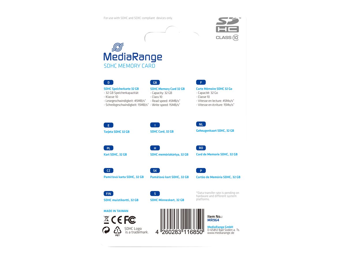 | Produktbeskrivelse | MediaRange - flashhukommelseskort - 32 GB - SDHC |