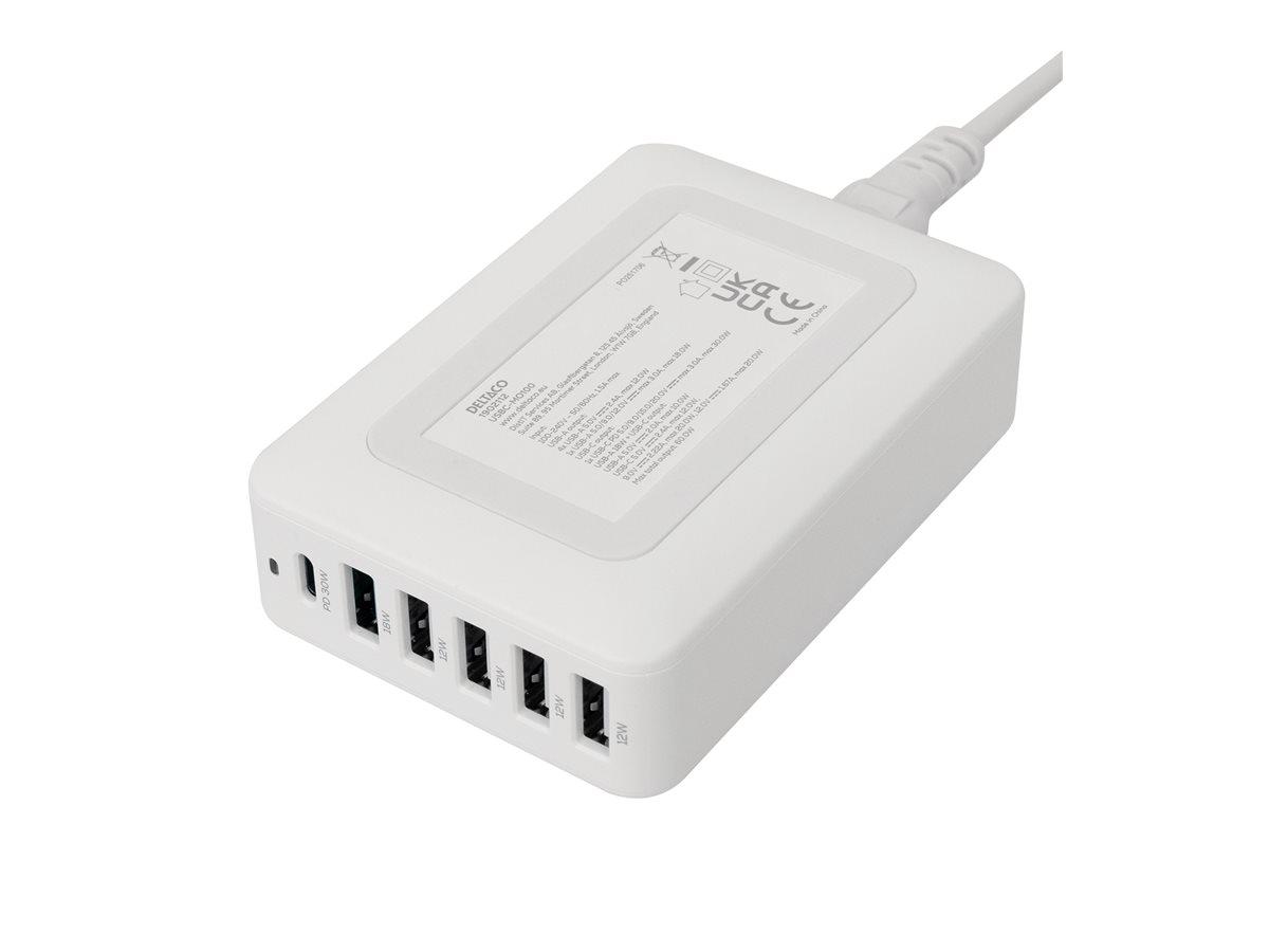 | Produktbeskrivelse | DELTACO opladningsstation - USB-C, 5 x 4 pin USB Type A - 60 Watt |