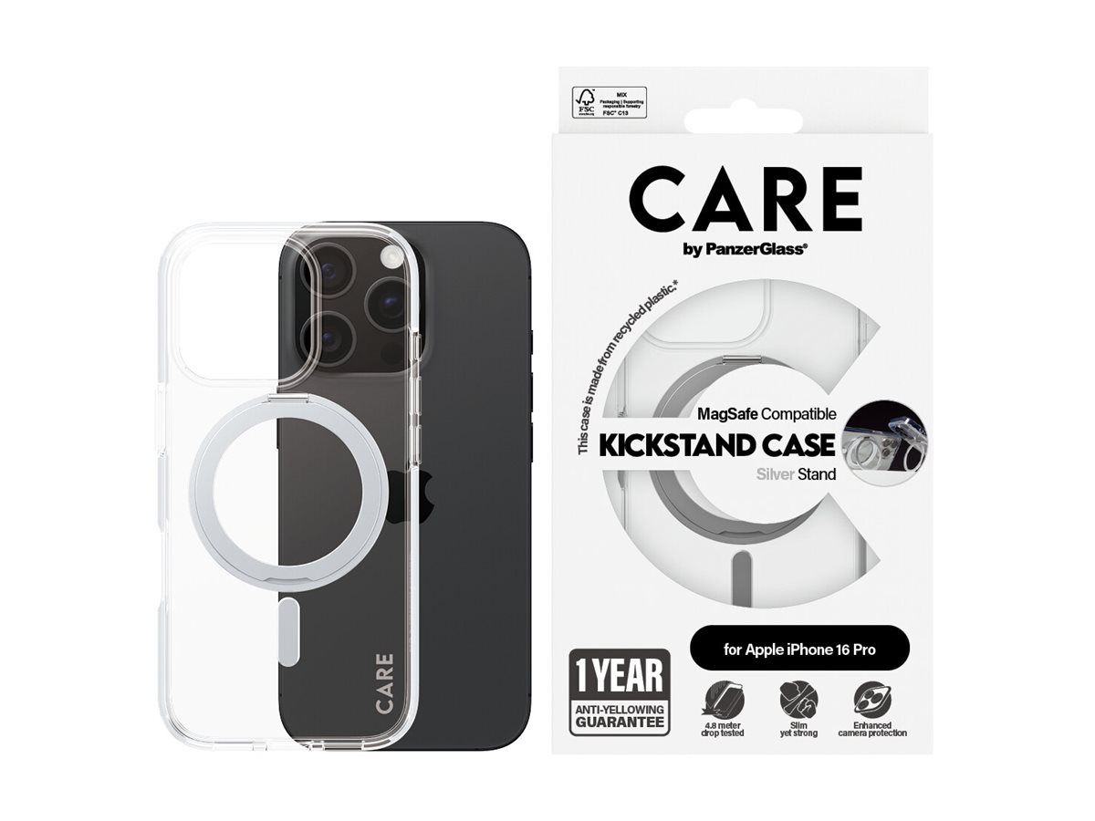 Få ultimativ beskyttelse af din mobil. Faldtestet på alle hjørner og vinkler fra 4,8 meters højde. Fremstillet af genanvendt plastik. Trådløs opladning og MagSafe-kompatibel. 1 års garanti mod gul misfarvning – uden forbehold og undtagelser. Det ultratynde og lette Kickstand cover er alt, hvad du drømmer om. Et af vores mest efterspurgte covere, der nu er tilgængeligt igen. Praktisk design med en ekstra feature til håndfri visning – både vertikalt og horisontalt. Gør det nemt for dig og dine børn at facetime, streame og se film – eller måske yogaundervisning. Håndfrit og hvor som helst. Giver dig desuden ekstra god beskyttelse af kameraet. DARE TO CARE Care er et internationalt livsstils- og techbrand, kendt for sit legende og ansvarlige design. Skabt af de bedste materialer og inspireret af de nyeste trends inden for mode, kunst og musik. Med CARE tager vi ansvar for mennesker og den verden, vi lever i. Vi understøtter bæredygtighed og dit personligt udtryk – og forlænger dine enheders holdbarhed. Opgrader din mobil til en stilsikker og godt beskyttet accessory. Vis verden, at du tager ansvar. Dare to care.