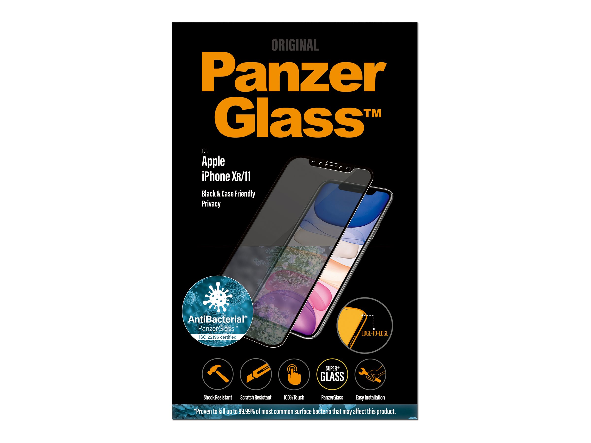 Private beskeder. Bankoplysninger. Pinkoder. Med denne skærmbeskyttelse kan du skjule dine hemmeligheder mod nysgerrige øjne hos folk, der sidder ved siden af dig i toget, i bussen eller på kontoret. Det specialdesignede privatlivsfilter gør indholdet på skærmen praktisk talt usynligt for alle andre end dig.Utilsigtede bump mod skarpe genstande i lommen eller drop på stenhårdt underlag er heller ikke noget problem for denne skærmbeskyttelse, der er modstandsdygtig over for ridser og stød. Den har endda en fingeraftryksafvisende overfladebehandling med antibakteriel effekt, der reducerer spor af fedtfingre og dræber op til 99,99 % af alle almindelige overfladebakterier. Skærmbeskyttelsen Edge-to-Edge dækker hele telefonens forside, samtidig med at der er plads til et cover.