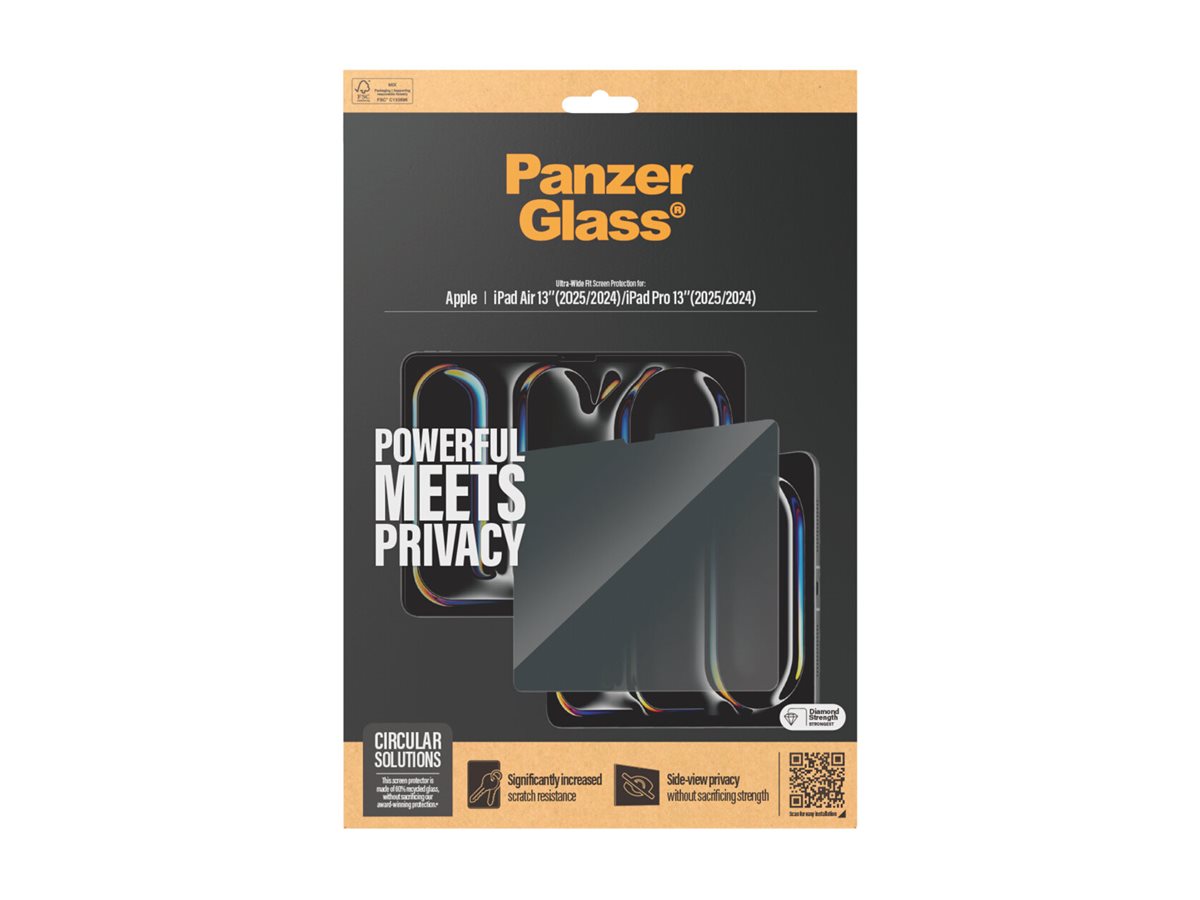 Private beskeder. Bankoplysninger. Pinkoder. Med denne skærmbeskyttelse kan du skjule dine hemmeligheder mod nysgerrige øjne hos folk, der sidder ved siden af dig i toget, i bussen eller på kontoret. Det specialdesignede privatlivsfilter gør indholdet på skærmen praktisk talt usynligt for alle andre end dig.Beskyt din iPad mod hverdagens udfordringer med PanzerGlass . Utilsigtede bump mod borde med skarpe hjørner eller drop på stenhårdt underlag er ikke noget problem for denne skærmbeskyttelse, der er modstandsdygtig over for ridser og stød. Skærmbeskyttelsen er nem at montere, og når den er sat på, behøver du aldrig mere bekymre dig over at se din iPad falde. Det kan være, det aldrig sker – men hvis det gør, vil du fortryde, at du ikke trykkede på "Tilføj til kurv".Skærmbeskyttelsen Edge-to-Edge dækker hele iPad'ens forside, samtidig med at der er plads til et cover.