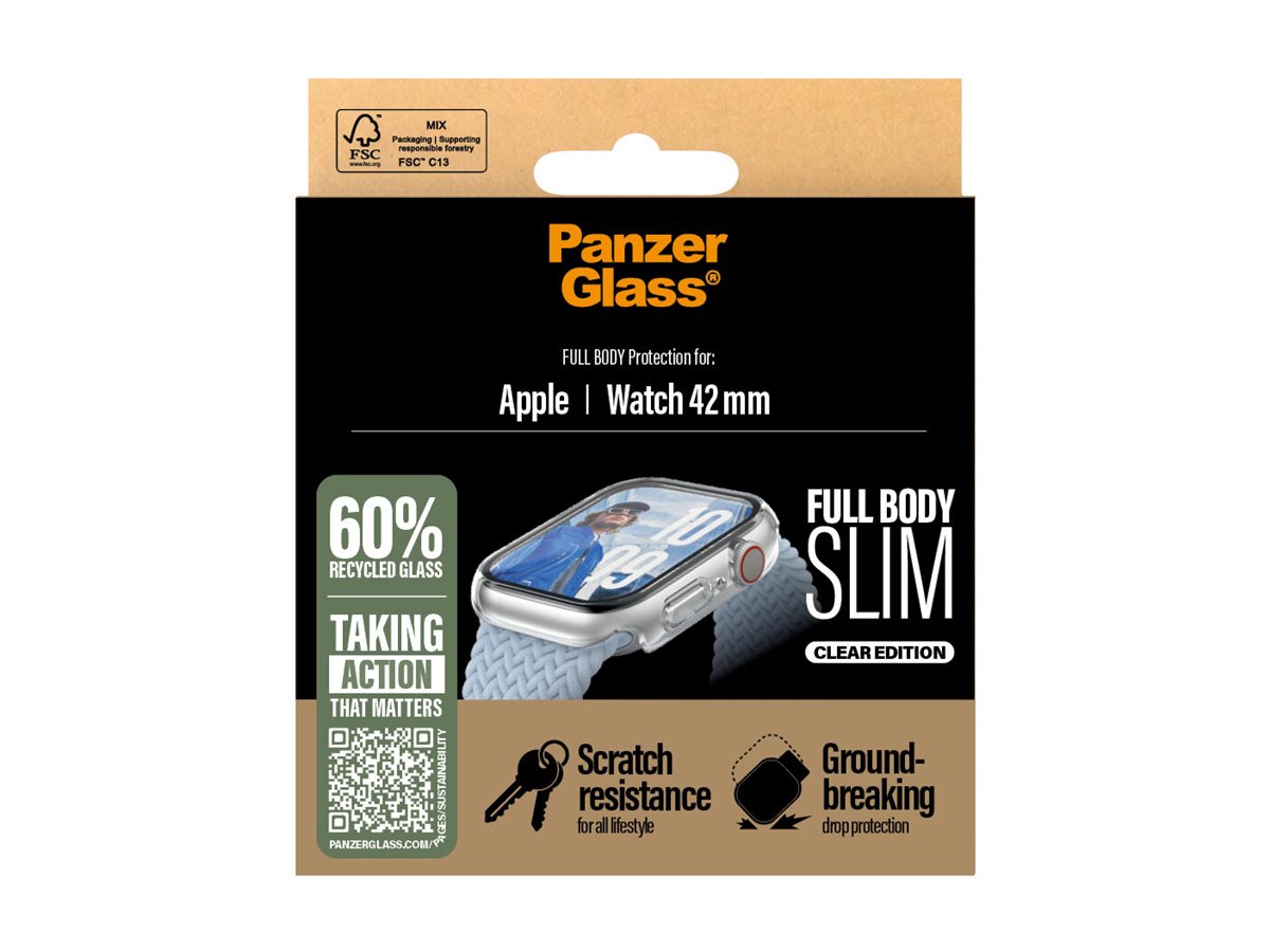 Coveret i fuld størrelse med transparant ramme dækker hele fronten og siderne på dit ur. Det slanke design giver beskyttelse hele vejen rundt uden at gøre uret større, og du har stadig let adgang til alle knapper. Vi beskytter ikke kun dit ur – vi beskytter også planeten. I 2024 reducerede vi mængden af papir i vores emballager med 66 %*, ligesom vi leverer dette produkt i en genanvendelig FSC-mærket æske. *Gennemsnitlig reduktion fra 2022 til 2024 beregnet ved at sammenligne udvalgte PanzerGlass kerneprodukter.