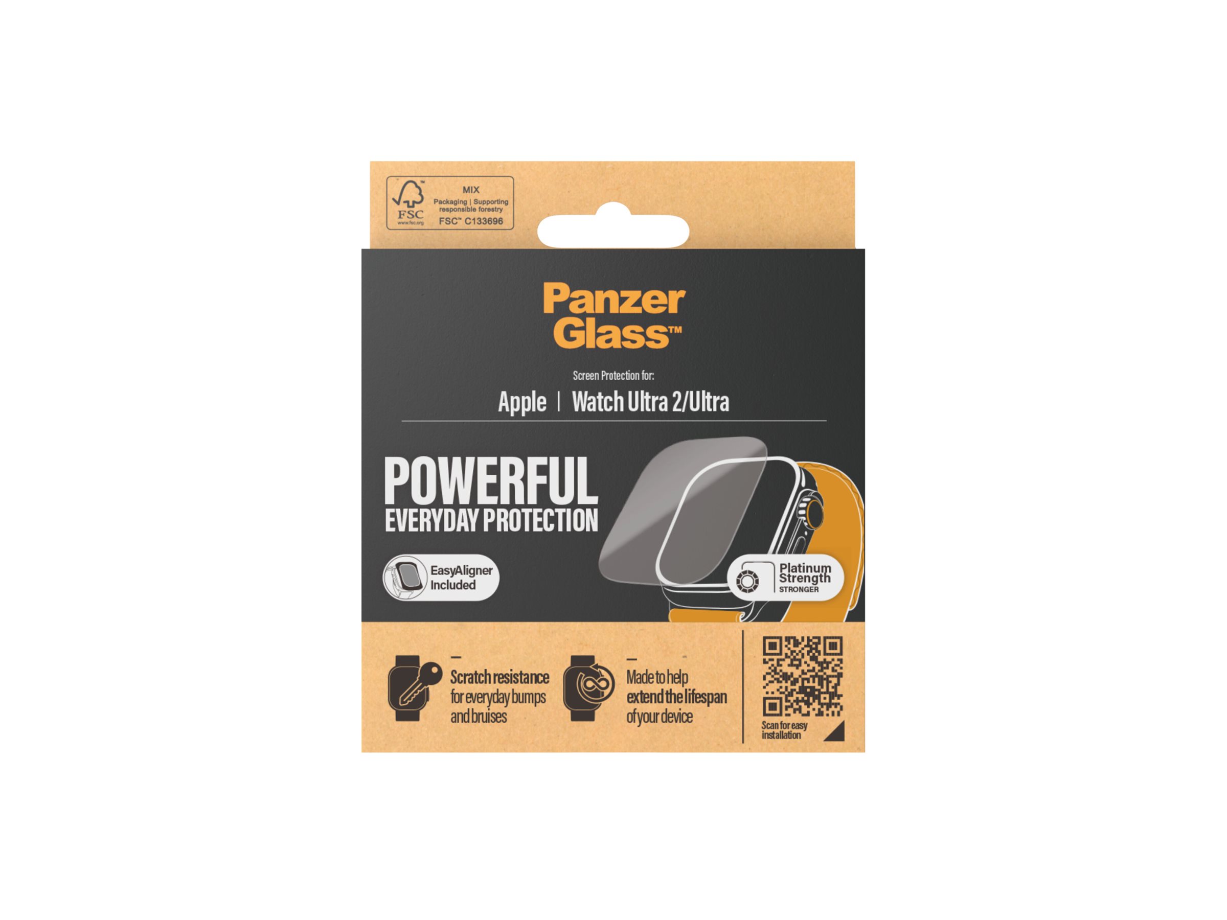 Stenhårde klipper på bjergtoppe? Knivskarpe koraller på bunden af havet? Eller forrevne drypsten i underjordiske huler? Med den her skærmbeskytter fra PanzerGlass kan du roligt tage dit Apple Watch med på selv de mest hardcore eventyr. Skærmbeskytteren er nemlig ekstremt modstandsdygtig over for ridser.Som prikken over i'et har skærmbeskytteren en smudsafvisende belægning, der reducerer fedtfingre. Selv installationen er legende let: Bare sæt skærmbeskytteren på dit ur – så er det slut med at frygte den skærmridsende lyd af glas mod sten. Det kommer muligvis aldrig til at ske, men hvis det gør, vil du fortryde, at du ikke klikkede "Tilføj til kurv".Skærmbeskytteren dækker hele din skærm. Og emballagen, ja, den er naturligvis FSC -mærket og kan genanvendes.