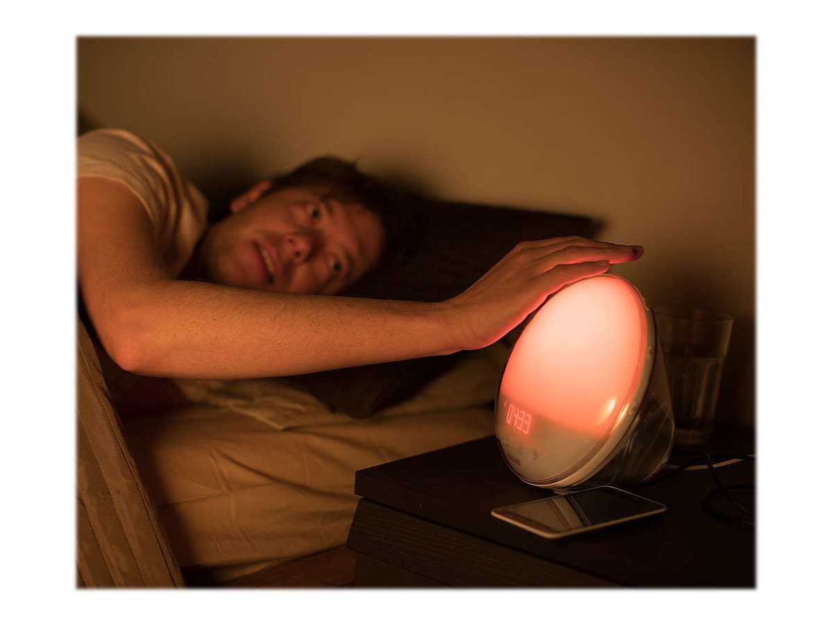 I den lange vinterperiode i Norden er det mørkt, når man vågner, og mørkt, når man kommer hjem. Det kan føles unaturligt at blive vækket af en kimende alarm i mørket, så det er ikke så underligt, at man bliver stressede og kommer i dårligt humør. Med Philips Wake-up Light vækkes du gradvist af et lys, som langsomt bliver kraftigere. Denne model har desuden 7 vækkelyde, som afslutter vækningen. Du vågner af dig selv på en behagelig måde og er mere udhvilet og mindre stresset. Ved at blive vækket af lys får du en bedre start på morgenen og mere energi resten af dagen.