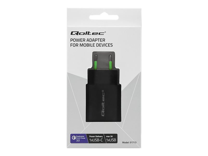 | Produktbeskrivelse | Qoltec Mains charger strømforsyningsadapter - USB, USB-C - 18 Watt |