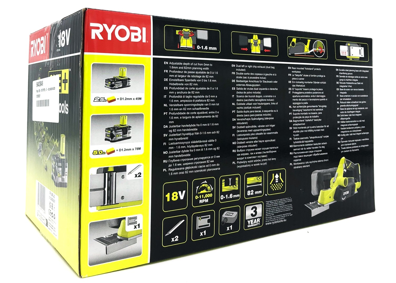 | Produktbeskrivelse | Ryobi R18PL-0 høvl - ledningfri - intet batteri |
