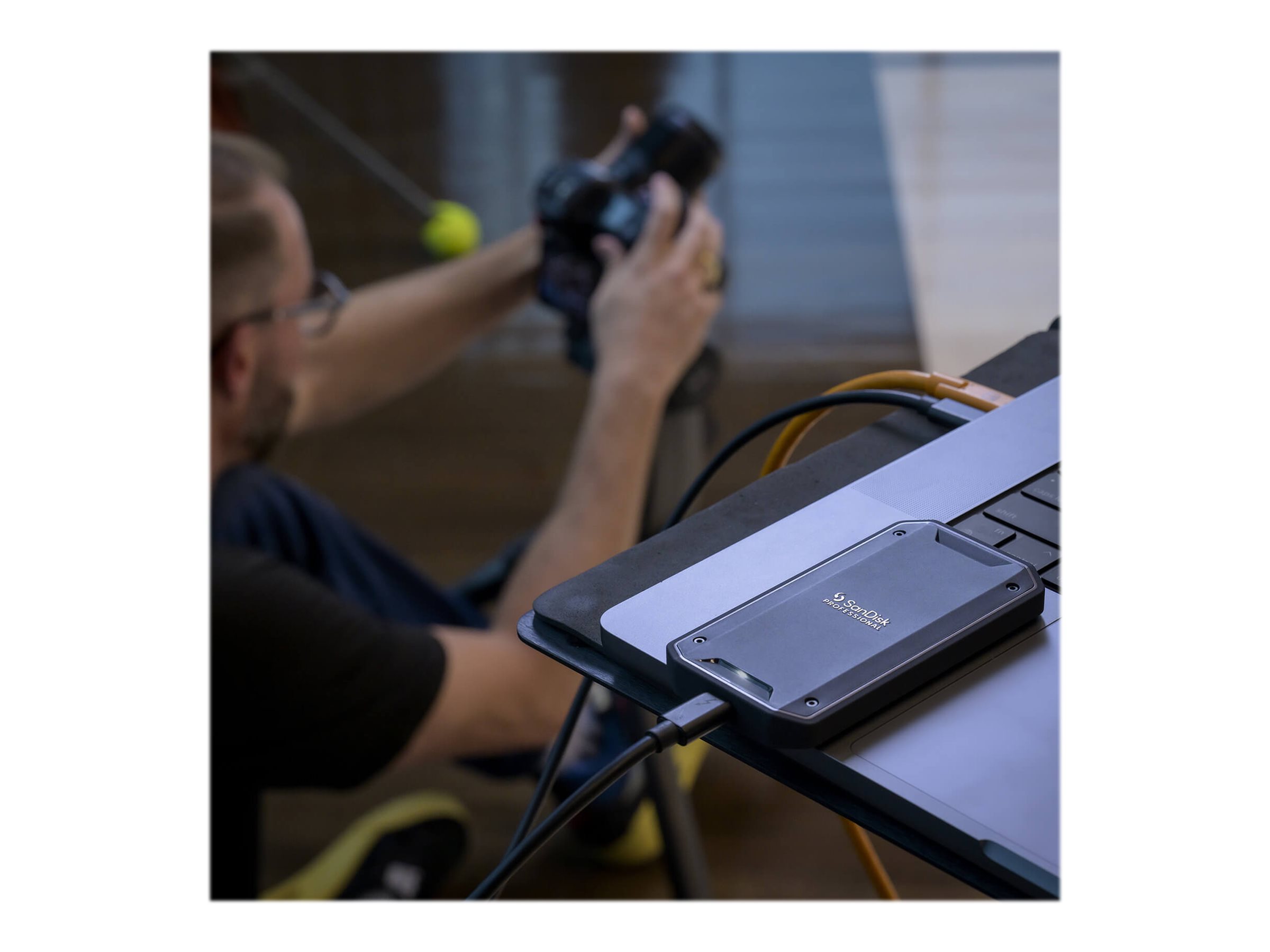 Fordyb dig i handlingen med den superladede, ultrarobuste SanDisk Professional PRO-G40 SSD. Dette alsidige drev er bygget til kompatibilitet med både Thunderbolt 3 og USB 3.2 Gen 2 og giver dig mulighed for effektivt at samarbejde på tværs af enheder. Med hastigheder på op til 3000 MB/s læsning og 2500 MB/s skrivning via Thunderbolt 3 vil PRO-G40 SSD'en drive dig gennem dine mest krævende arbejdsgange. Tag dette ultraholdbare drev med dig, uanset hvor dine visioner fører dig hen - dets modstandsdygtighed over for fald og knusning sammen med en IP68 støv- og vandafvisende klassificering hjælper med at modstå elementerne stort set alle steder.
