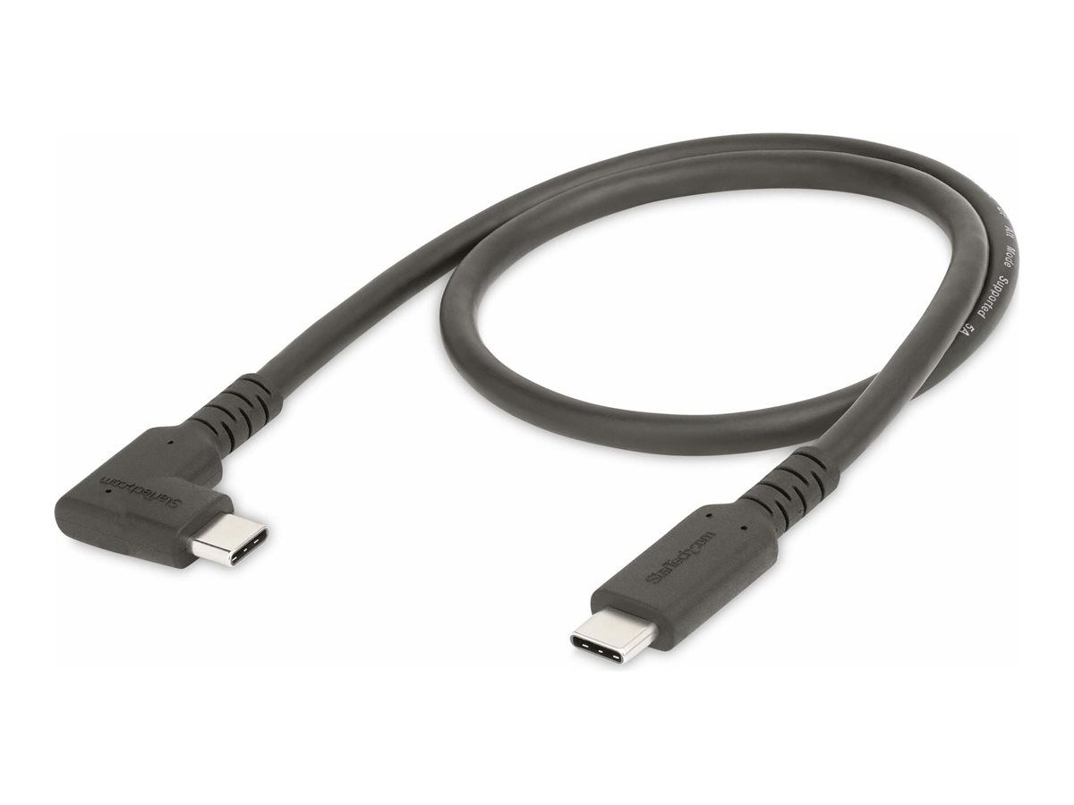 StarTech 1.6ft (50cm) Rugged Right Angle USB-C Cable, USB 3.2 Gen 2 (10 Gbps), USB C to C Data Transfer Cable, 4K 60Hz DP Alt Mode, 100W Power Delivery - 90 Degree USB-C Cable (RUSB31CC50CMBR) - USB-kabel - USB-C (han) lige til USB-C (han) højrevinklet - USB 3.2 Gen 2 - 50 cm - 4K60 Hz support, robust - sort
