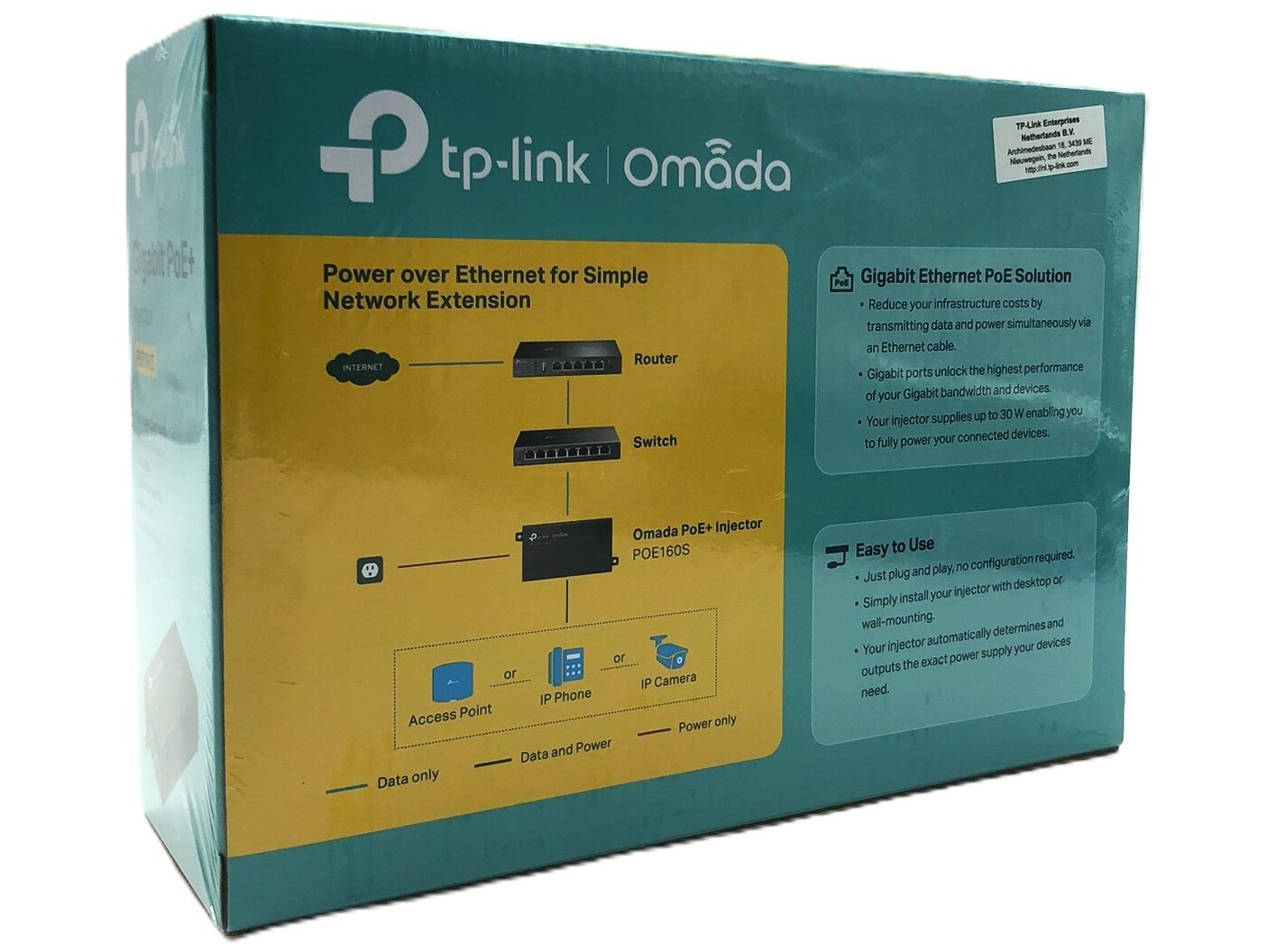 | Produktbeskrivelse | TP-Link TL-POE160S - PoE fordeler - 30 Watt |