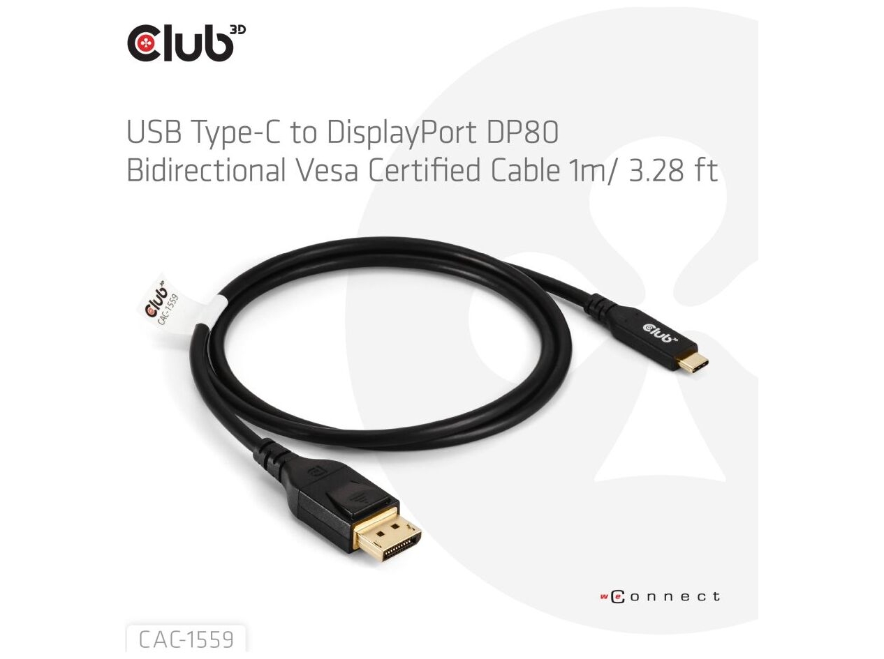 Club 3D CAC-1559 USB-C til DisplayPort 2.1 kabel 1m Sort