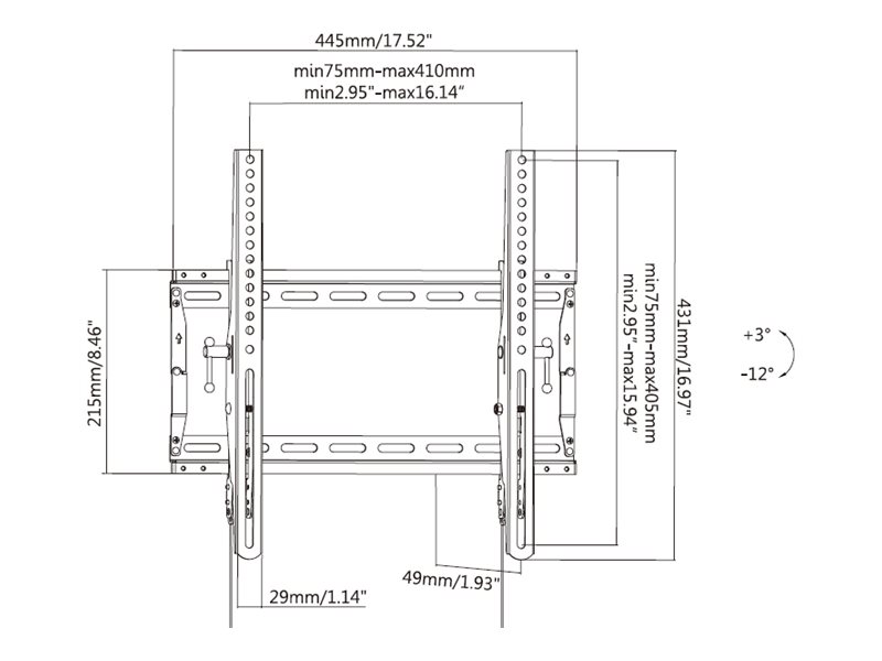Med justerbare fødder og hældningsjusteringer fra -12° til 3° giver dette monteringssæt optimale betragtningsvinkler, mens intern kabelstyring holder kablerne pænt organiseret for en ren opsætning.