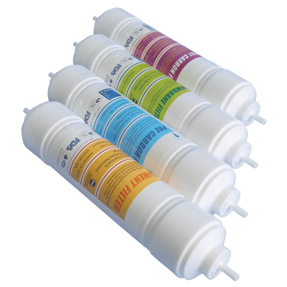 Waco vandfilter sæt - 4stk - Sedimentfilter - Pre-carbon filter - UF membranfilter - Post-carbon filter