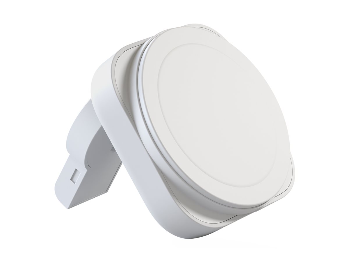 Denne opladningsplade er kompatibel med MagSafe-teknologi, hvilket sikrer en sikker forbindelse og effektiv opladning af kompatible enheder.
