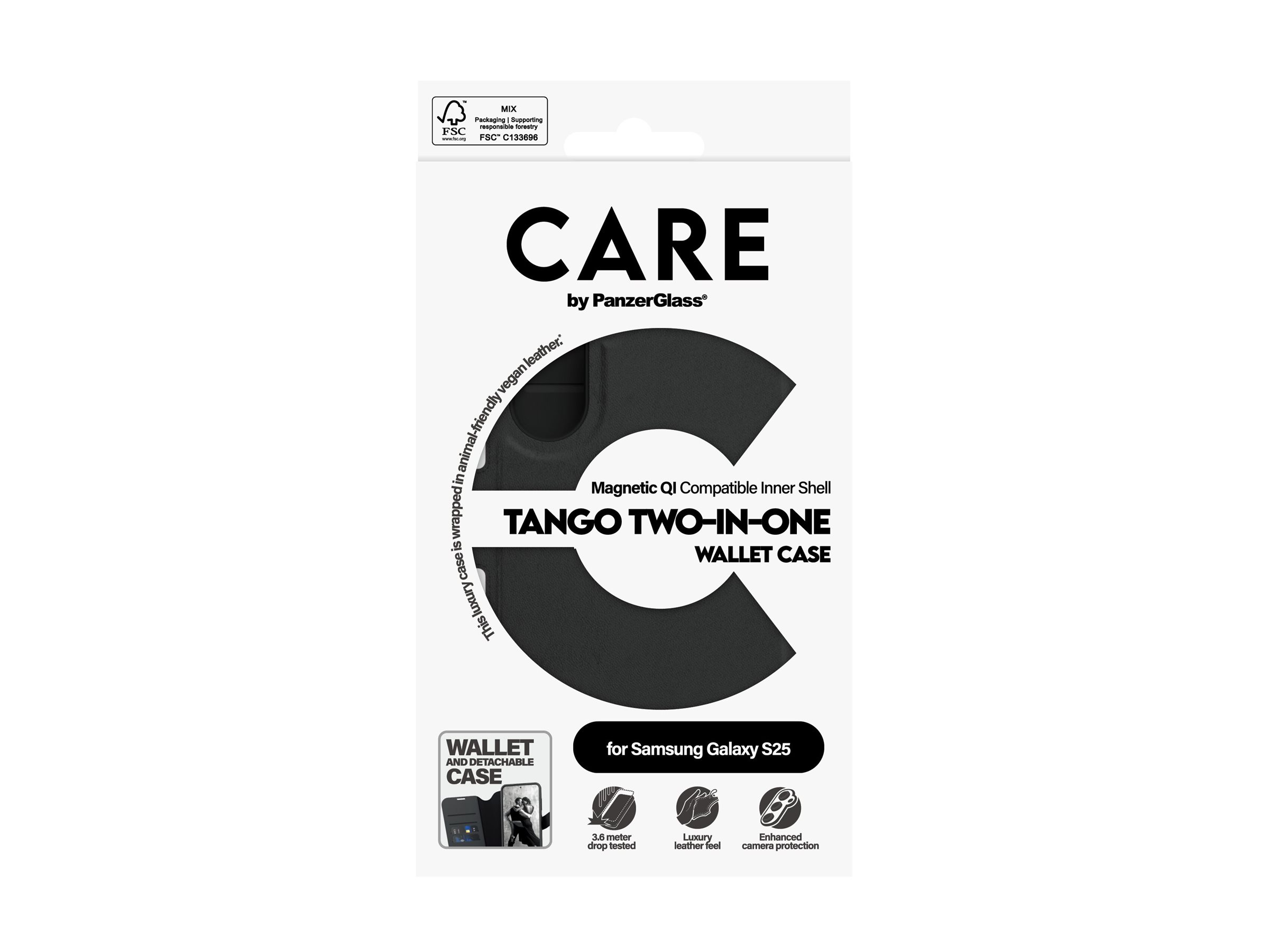 Der skal to til Tango – og det får du med dette 2-i-1 wallet cover. Ultratyndt og superstærkt. Stilfuldt cover og pung i ét samlet design. Luksuriøs læderoverflade. Den perfekte kombination af sikkerhed og bekvemmelighed i et gennemtænkt design med en smart lås, du nemt kan åbne og lukke. Elegant pung med aftageligt cover betrukket med dyrevenligt, vegansk læder. Giver dig sikker opbevaring af op til fire kort og RFID-blokering. Aftageligt cover i vegansk læder. Sikker opbevaring af op til 4 kort. Ekstra beskyttelse af kameraet. Elegant og stærk beskyttelse. DARE TO CARE CARE er et internationalt livsstils- og techbrand, kendt for sit legende og ansvarlige design. Skabt af de bedste materialer og inspireret af de nyeste trends inden for mode, kunst og musik. Med CARE tager vi ansvar for mennesker og den verden, vi lever i. Vi understøtter bæredygtighed og dit personligt udtryk – og forlænger dine enheders holdbarhed. Opgrader din mobil til en stilsikker og godt beskyttet accessory. Vis verden, at du tager ansvar. Dare to care.