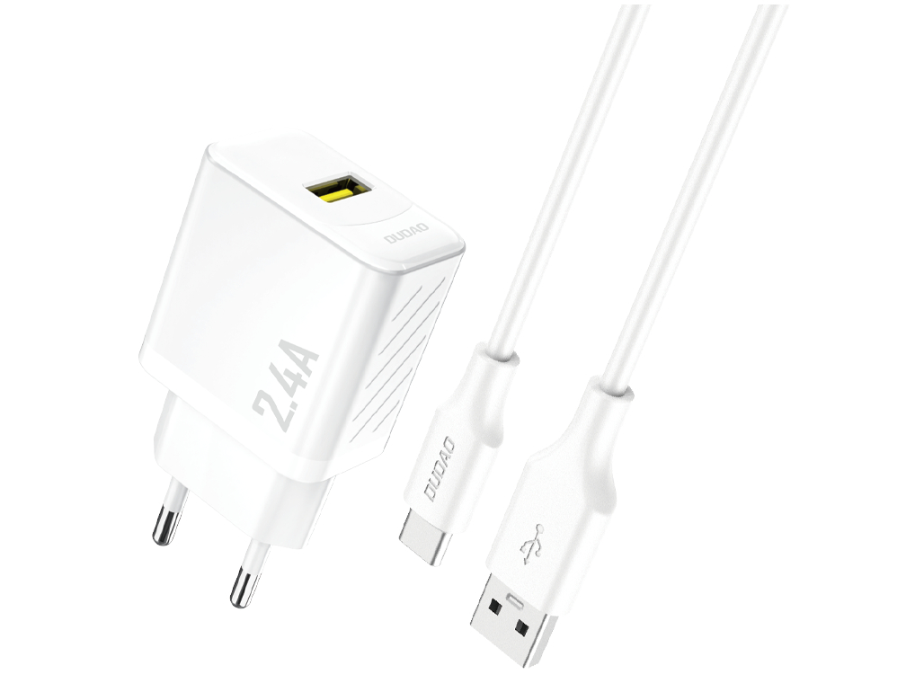 Dudao - Strømforsyningsadapter - GaN - 12 Watt - USB-A - USB-A til USB-C Kabel - Europa - Hvid