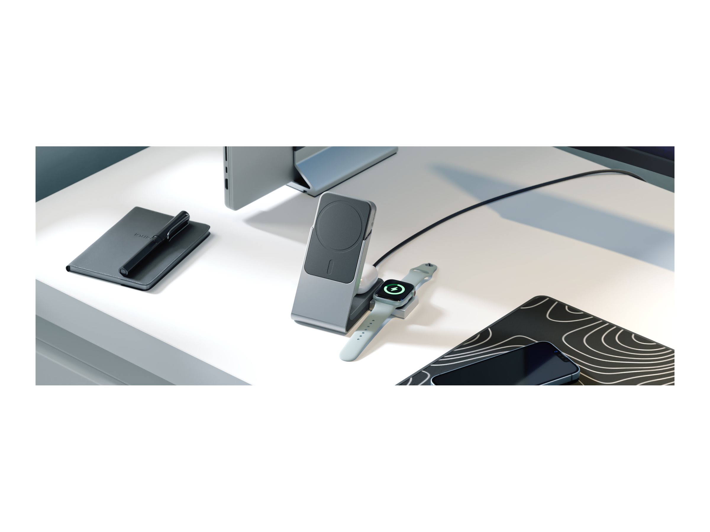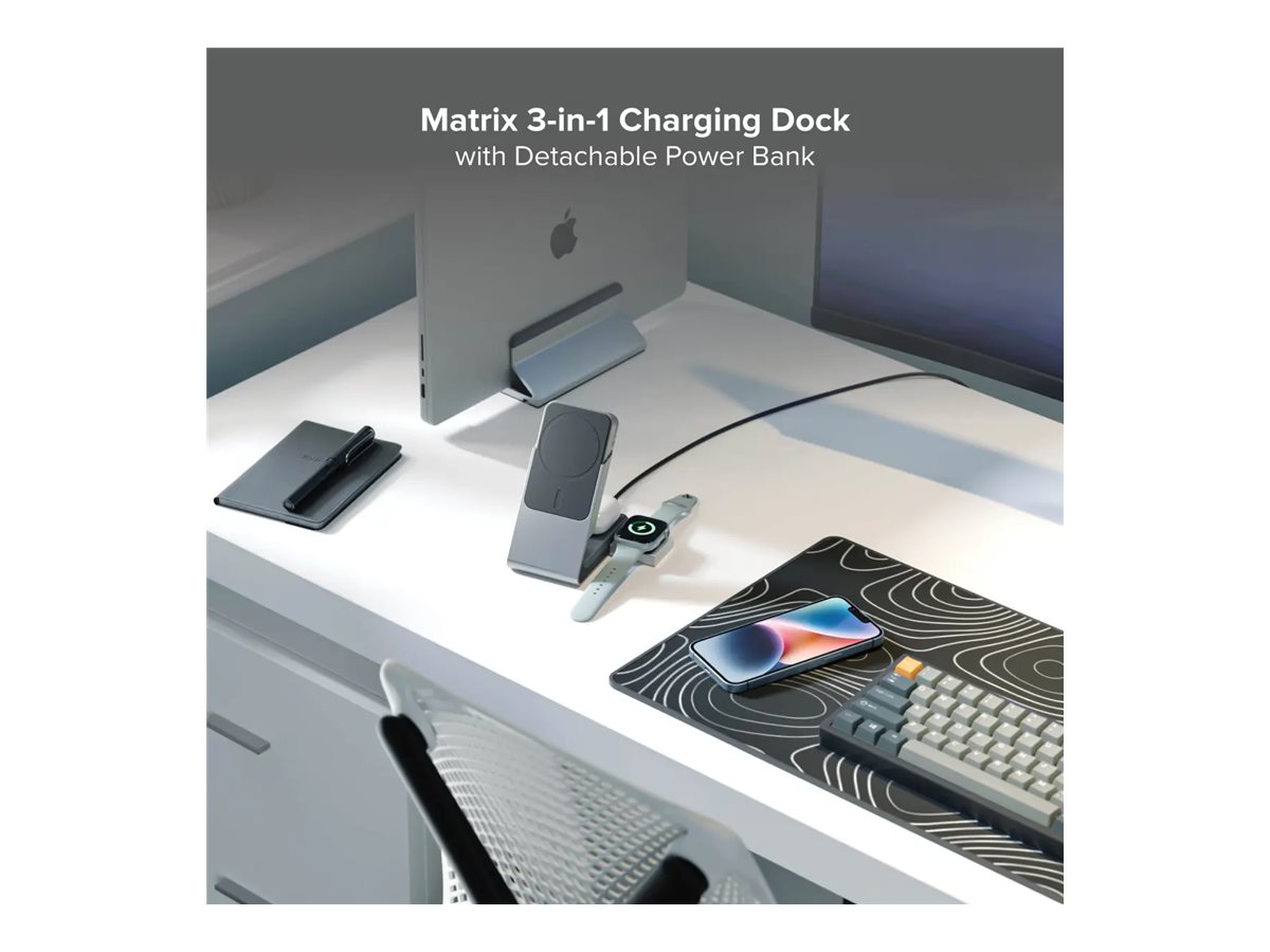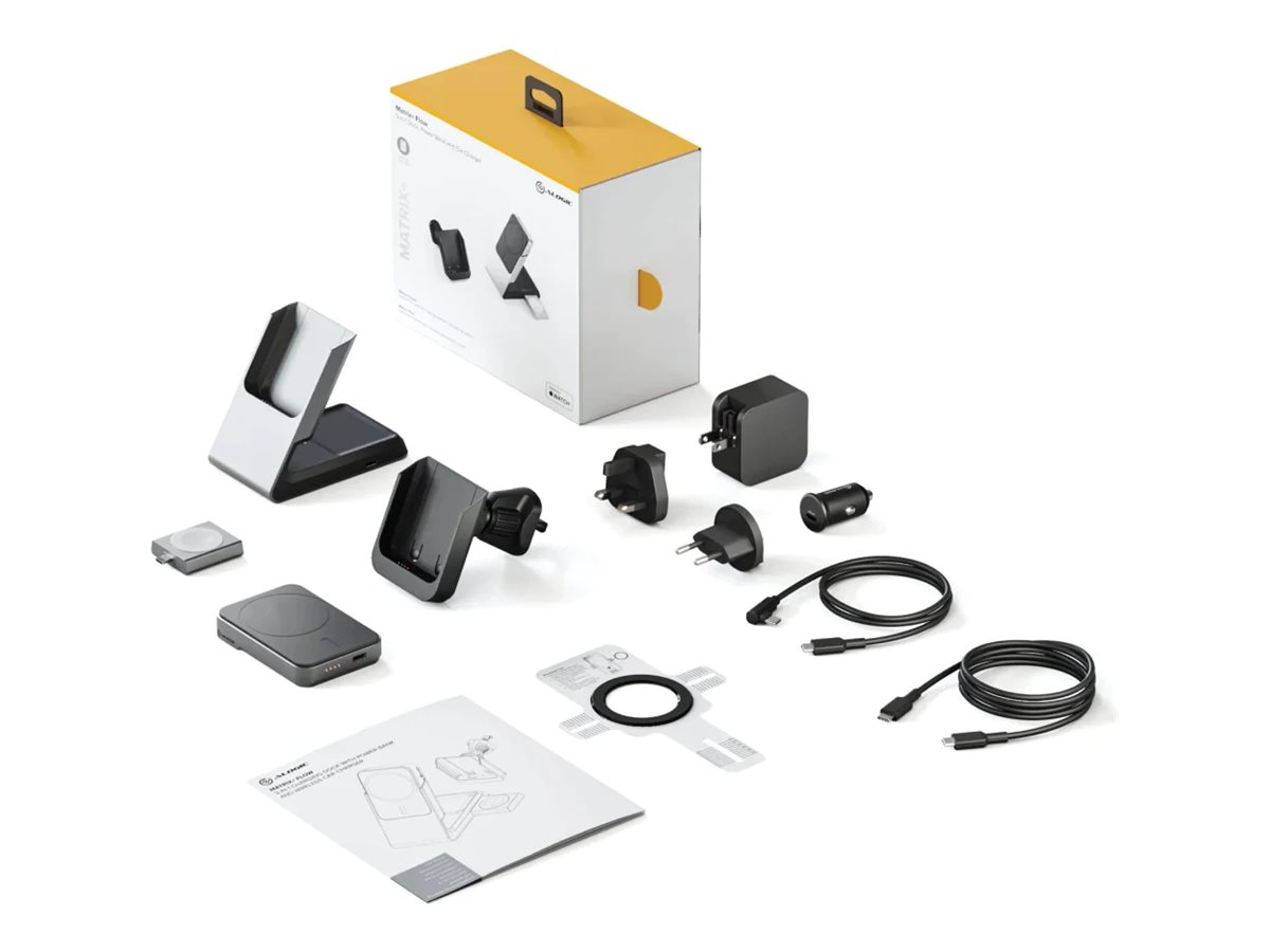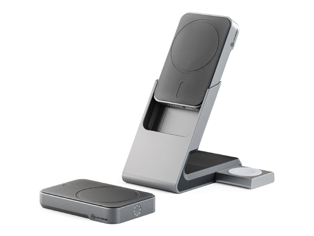 | Produktbeskrivelse | ALOGIC Matrix+ Flow trådløs opladningsstander - 3-i-1 + bilstrømsadapter - med trådløs opladnings powerbank - 30 Watt |