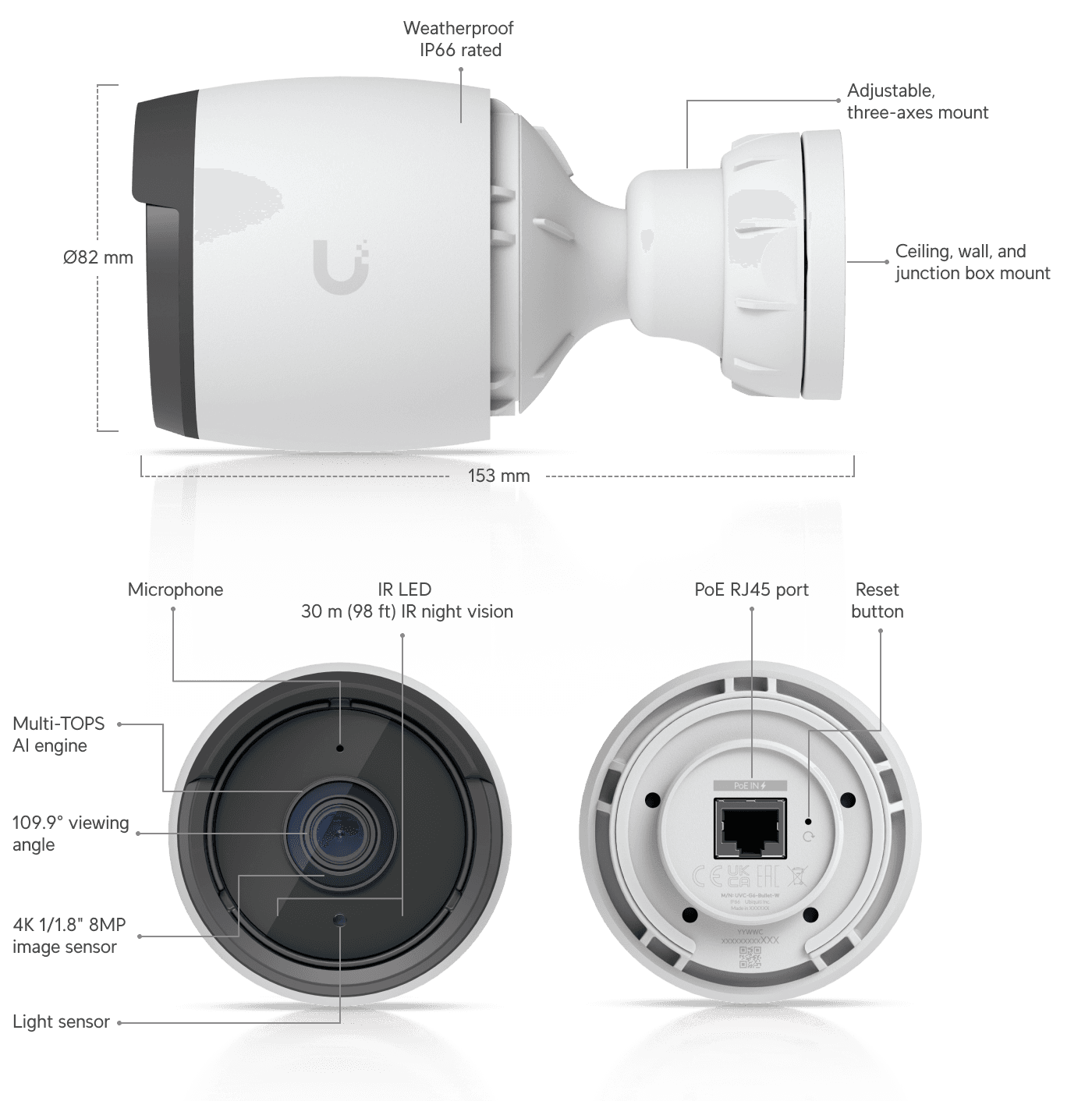 Ubiquiti UniFi Protect G6 - Netværksovervågningskamera - kugle - udendørs, indendørs - vejrbestandig - farve (Dag/nat) - 8 MP - 3840 x 2160 - 4K - fast brændvidde - audio - LAN 10/100 - PoE
